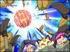 So begegnet Team Rocket kurz darauf dem Schlurplek und versucht es mit einem neuen Roboter zu fangen. Dies klappt auch, doch zum Glück können Ash, Lucia, Rocko und Angie eintreffen um Team Rocket zu stellen. Das Sheinux von Angie schafft es Schlurplek zu befreien, während Pikachu und Plinfa den Team Rocket-Roboter angreifen. Dieser erweist sich jedoch als härter als gedacht. Nachdem unsere Freunde es mit einer neuen Taktik versuchen kann Angie Schlurplek Befehle erteilen. Mit Walzer und Slam von Schlurplek wird so der Team Rocket-Roboter in seine Einzelteile zerlegt und Team Rocket erhält den gewohnten Freiflug.