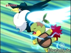 Nachts verlässt Chelcarain jedoch das Zimmer unserer Freunde, was alle Pokémon bemerken und ihm nach draussen folgen, wo es heimlich alleine trainiert um mit seinem neuen Gewicht klarzukommen. Es will unbedingt wieder so schnell wie früher sein. Während die Pokémon wie Staravia und Plinfa unsere Freunde aufwecken, treffen Chelcarain und Chelterrar (von Paul) aufeinander. Dabei reden die beiden miteinander. Als ein Skorgro (das von Ash offenbar) das Chelterrar angreift, sehen alle, dass Chelterrar gar nicht daran denkt auszuweichen. Es steckt die Attacken ein um im richtigen Moment zurückzuschlagen. Sowohl Chelcarain als auch Ash, der inzwischen eingetroffen ist, verstehen, was Chelterrar allen sagen wollte. Natürlich bedankt sich Ash bei Chelterrar für die freundliche Unterstützung, bevor dieses wieder davonzieht. Ash und Chelcarain wissen nun, dass Schnelligkeit nicht immer das wichtigste ist und jeder seinen ganz persönlichen Kampfstil hat.