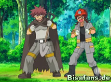 Es dauert nicht lange bis Team Rocket gestellt wird. Veit greift diese mit seinem Rameidon an, während sein Vater Bollterus ruft. Team Rocket setzt seinen anfangs übermächtigen Grabe-Roboter ein, der jedoch nach einigen Team-Attacke von Rameidon und Bollterus zerstört wird. Dabei arbeiteten Vater und Sohn wie ein Team zusammen und Veit konnte seinem Vater auch die Superattacke seines Rameidon vorstellen. Auch Ash und Pikachu tragen ihren Teil zu diesem Kampf bei, an dessen Ende Team Rocket den gewohnten Abflug macht.