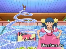 Der Tag des Wettbewerbs ist gekommen und Lucia als erste übernimmt die Einleitung mit Haspiror. Ein Eisstrahl bildet eine spiralenartige Rutsche, die Haspiror auf seinen Ohren runterrutscht. Bei der Jury kommt diese niedliche Vorstellung des Verspielten Haspiror sehr gut rüber. Eine gute Vorstellung nach der anderen und nach Jessibelle kommt Lucias neue Konkurrenz Urara auf die Bühne und macht mit Burmadame aus einer unscheinbaren Vorstellung eine kraftvolle und glänzende Präsentation.