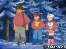 Endlich sind unsere Freunde wieder vereint und die Reise kann weiter gehen. Sie verabschieden sich von Frosdedje. Team Rocket erinnert sich daran, dass der Waffenstillstand zwischen den Knirpsen und ihnen aufgehoben sein sollte und beim Fangversuch von Pikachu stellen sie sich selbst ein Bein: rutschen auf den Schnee aus und schaffen, was nur sie schaffen können, fliegen den Sternen als Schneeball entgegen.