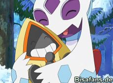 ... unsere Freunde sind auf den Weg nach Blizzach in einer ähnlich schlimmen Situation. Auch die Karte kann daran nichts ändern: sie sind im Schnee verloren und suchen Unterschlupf, doch unter der Kälte leiden sie trotz der Hilfe von Haspiror und Panflam. Da erscheint ihnen auch das mysteriöse Frosdedje und zeigt unseren Freunden den Weg in ein warmes Rasthaus, mit einer leckeren Suppe und warmen Bad für Plinfa. Doch all das entpuppt sich als Illusion... sie wurden lediglich in eine Eishöhle gelockt. Plinfa ist plötzlich das Gefangene von Frosdedje und schon bald erfahren wir auch, was mit Team Rocket geschehen ist!
