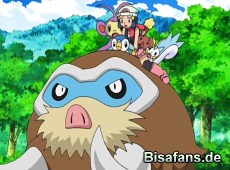 Wie auch nicht anders erwartet legt sich dieses stur hin und schläft weiter. Eine Hyperstrahlattacke des Gegners veranlasst Mamutel dennoch zu ersten Bewegungen. Mit seinen Eisattacken kann es leider nicht viel anrichten und Stollos stößt Lucia samt ihrer Pokémon von der Klippe.