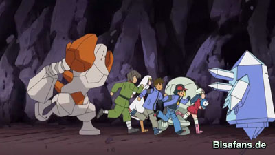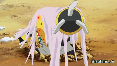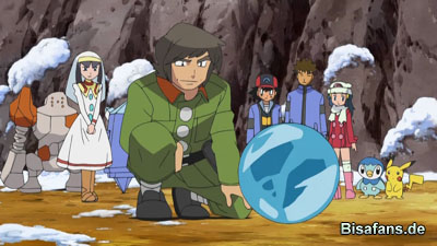 Die Überraschung gelingt ihnen, denn durch eine Art Kaugummi (genau die gleiche Art wie sie Team Rocket gerne einmal verwendet ) können sie Regigigas kampfunfähig machen. Die drei Golems haben nun keine Chance mehr und werden nach und nach alle versteinert. Als unsere Freunde dazu kommen, ist die Jägerin gerade dabei auch ihr eigentliches Ziel zu versteinern. Doch in diesem Moment wirft sich Brandon mutig vor Regigigas, um das Pokémon zu retten.