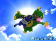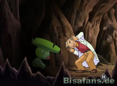 Unsere Freunde suchen im Sumpfgebiet unterdessen nach Professor Eich. Plinfa als Wasser-Pokémon übernimmt hier gerne die Führung. Als es jedoch im ersten Sumpfbereich zu versinken droht, muss es von Haspiror mit einem Eisstrahl gerettet werden Danach darf Rockos Glibunkel die Führung übernehmen (und muss Plinfa retten bis Lucia es zur Sicherheit trägt).