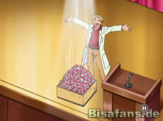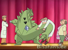Quaxo stimmt zu und übergibt dem Lombrero den Wasserstein. Sekunden später entwickelt sich das Lombrero zu einem quietschfröhlichen Kappalores. Natürlich staunen alle über Professor Eich und wie er diese Situation souverän meisterte. Nur über seinen extra hierfür erfundenen Reim freut sich Ash nicht wirklich. Nun aber schnell zurück zum Festival.