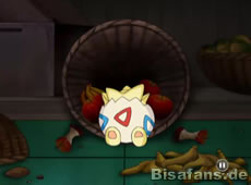 Während Team Rocket kurz darauf ihren großen Fang feiertn, plündert jemand die Speisekammer in der Basis. Schnell stellt sich heraus, dass es das vorhin erwähnte Togepi ist. Als Team Rocket es stellt, macht es auf Traurig und schmeichelt sich bei Jessie so sehr ein, dass Team Rocket tatsächlich an die Unschuld des Togepi glaubt und ein anderes, freches Togepi sucht. Nachdem alle weg sind, zeigt sich aber, dass dieses Togepi das freche Togepi war.