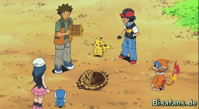 Es ist wieder ein schöner Sonniger Tag in der Pokémon Welt und Ash trainiert mit Lucia für seinen letzten Orden in Sonnewik. Ash kämpft mit Panpyro gegen Lucias Plinfa, Panpyro setzt Schaufler ein, doch als es sich eingraben will schlägt es mit der Hand auf etwas hartes im Boden und tut sich weh. Unsere Helden wissen nicht was mit Panpyro ist und sind verwirrt. Rocko geht daraufhin zu dem Loch wo Panpyro angefangen hat zu graben und findet eine Schmuckschatulle, über welche sich Ash freut. Doch leider lässt sich die Schmuckschatulle nicht öffnen.