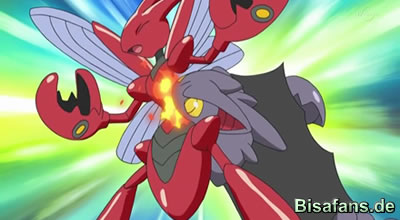 Schon in der ersten „Kurve“ merkt man, dass Skorgro jetzt wesentlich besser den Wind einschätzen kann. Ebenfalls kann es jetzt den Attacken von Scherox besser ausweichen, was am Anfang nicht möglich war. Nach einem Treffer von Scherox schafft es Skorgro nun mit Hilfe von Sandwirbel Scherox für kurze Zeit blind zu machen. Dies nutzt es auch, worauf es mit Feuerzahn einen Treffer landen kann. Nachdem Beide nun einen weiteren Treffer gelandet haben, beginnt Skorgro auf einmal eine neue Attacke auszuführen. Es wird nun klar, dass es soeben Gigastoß erlernt hat, welche Scherox auch erfolgreich trifft. Dadurch, dass Skorgro nun vom Wind nach oben gezogen wird, kann es beruhigend wieder aufladen, jedoch wird es danach wieder von einem Doppelschlag getroffen. Nach einem mächtigem Hyperstrahl von Scherox muss sich Skorgro erneut geschlagen geben.