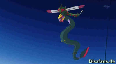 Yanmega lässt Vipitis auf Plusle und Minun fallen, doch die zwei schießen sich zusammen, machen einige Umdrehungen und treffen und kommt weiter.