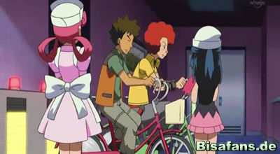 Unterdessen sind Rocko, Lucia und Ignaz im Pokémon-Center, um zu überlegen, wie man am besten Strom gewinnen kann. Von Schwester Joy kommt schließlich die Idee, dass man Strom durch die Reibung von Fahrradrädern gewinnen kann (wie bei einem Dynamo, das andere übernimmt Rocko, während Lucia versucht, Schwester Joy und den Pokémon im Center zu helfen.