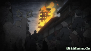 Eusin erzählt daraufhin von der Legende. Die Turmruine sei früher ein wunderschöner Turm mit prächtigen Verzierungen gewesen. Während eines Krieges brach jedoch ein Feuer im Turm aus und drei Pokémon, die sich darin befanden, wurden von den Flammen verzehrt. Nachdem der danach einsetzende Regen das Feuer des abgebrannten Turms gelöscht hatte, stieg ein regenbogenfarbener Vogel vom Himmel. Es war Ho-Oh und mit seinen Kräften schenkte es den drei Pokémon neues Leben, die fortan als Raikou, Entei und Suicune bekannt waren. Die Menschen konnten das Wunder nicht fassen und fürchteten sich vor Ho-Ohs Kraft und den wiederauferstandenen Pokémon. Sie bewarfen sie mit Steinen, aber die Pokémon wehrten sich nicht. Sie verließen stattdessen schwer getroffen von der Grausamkeit der Menschen die Stadt. Eine weitere Legende sagt jedoch, dass sich die drei wieder zeigen werden, wenn sie ihren Glauben an die Menschheit zurückerlangt haben.