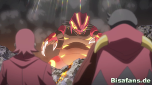 Schließlich betritt auch Marc das Innere des U-Boots und während die Rüpel alles zum Start vorbereiten, gibt der Magma-Anführer schließlich den Befehl, loszulegen. Wasser wird in das Becken gefüllt und Jördis wünscht sich, dass der Traum des Teams nun in Erfüllung geht. Sie hat sogleich eine Vision von Proto-Groudon, das mit seinen Attacken und seiner Anwesenheit die Region verwüstet. Team Magma sieht fassungslos zu, ohne etwas tun zu können und wird schließlich auch von Proto-Groudon angegriffen.