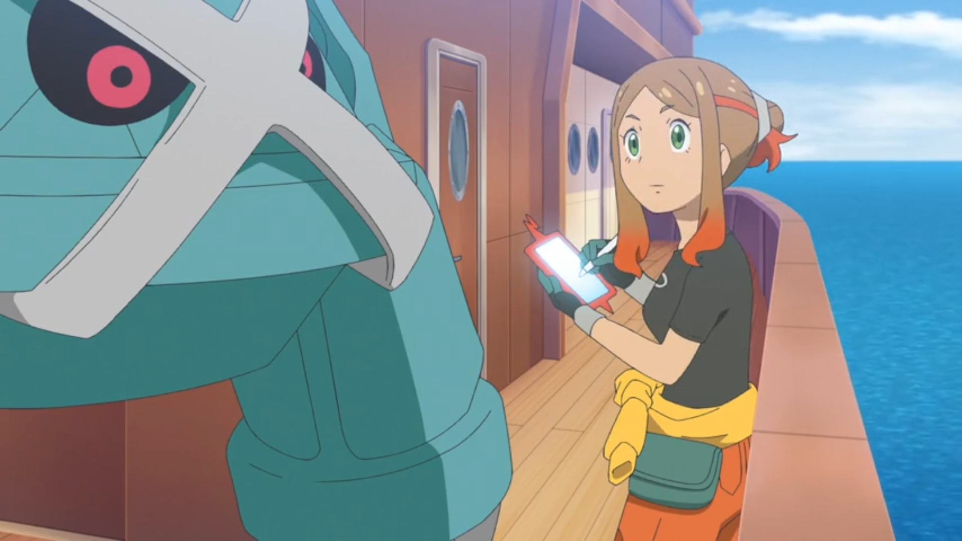 Im Hafen der Stadt ruft Murdock sein Wuffels, das Feloris Geruch nachverfolgen soll. Während sich Orla mit ihren Pokémon um einige Reparaturen auf dem Luftschiff kümmert, fischt Ludlow an seinem Lieblingsplatz nach Karpador.