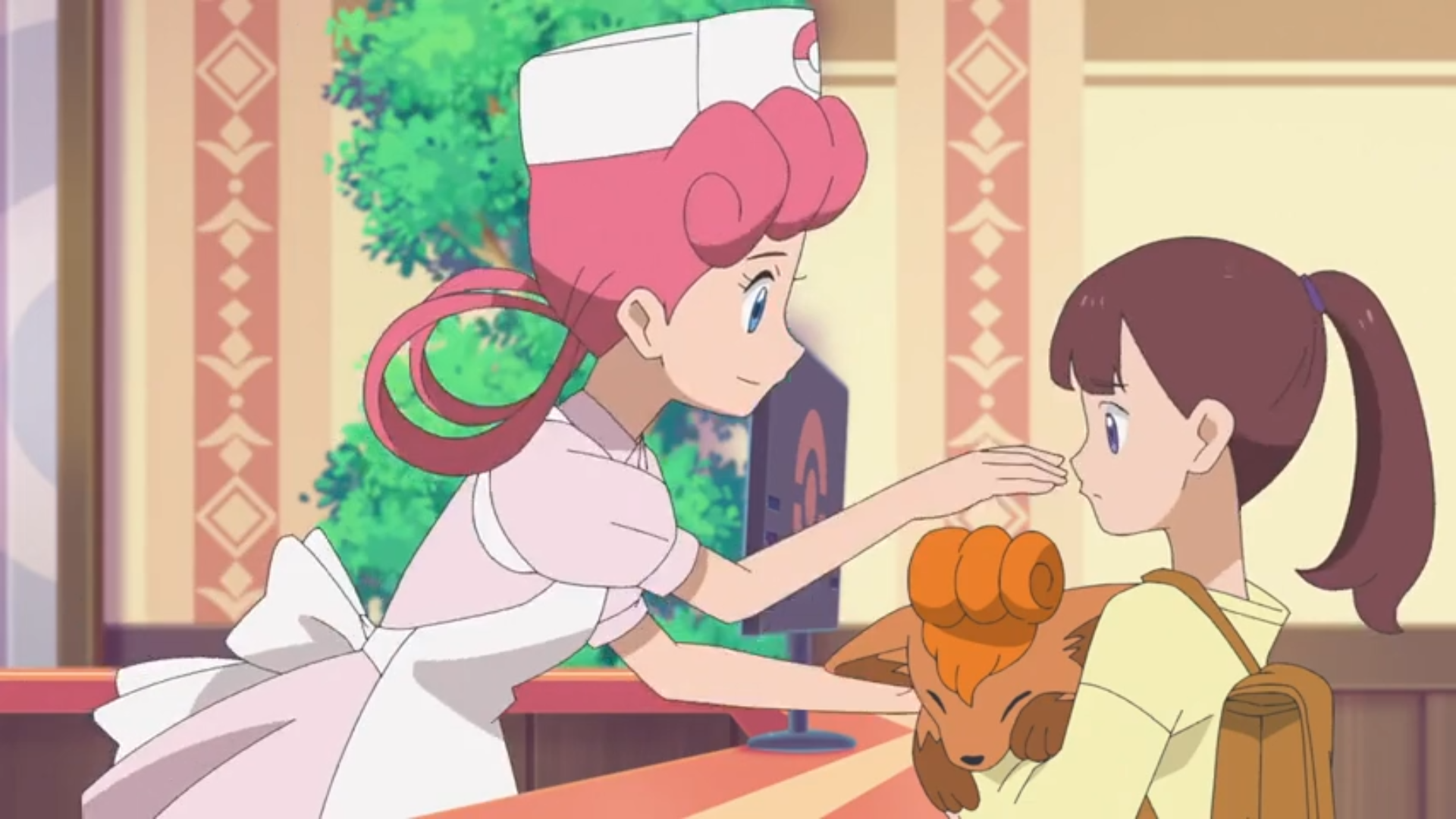 Das verletzte Vulpix wurde, sehr zur Freude seiner Trainerin, in der Zwischenzeit geheilt. Kurz darauf taucht Schwester Joy mit den bestellten Waren auf, die Liko unter Mühen nach draußen trägt. Chaneira unterstützt sie kurz, bis Mollie auftaucht.