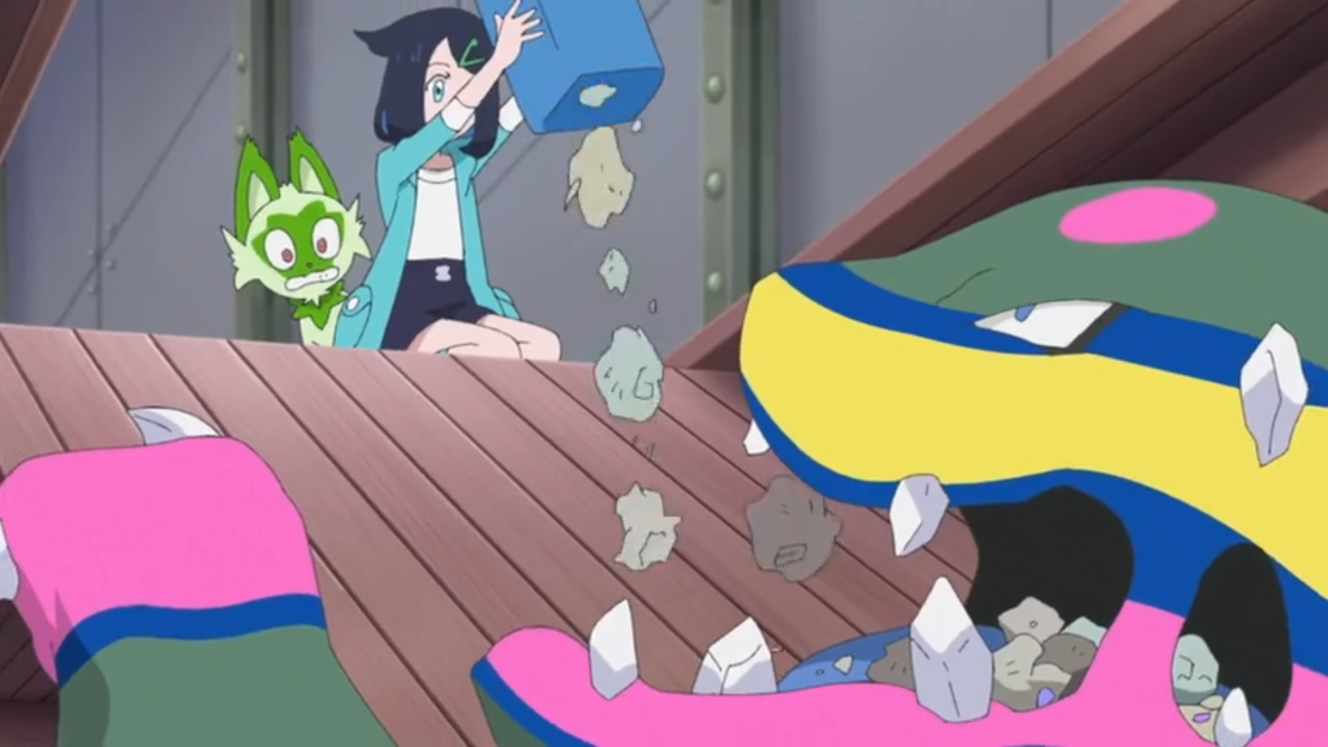 Während die Aeronauten die Landung vorbereiten, wohnen Liko und Rory ihren Fernunterrichtsstunden per Smart-Rotom bei. Dabei kann sich Liko kurz mit An über einen bevorstehenden Livestream von Nidothing unterhalten. Beide wollen sich an diesem Tag die Zeit nehmen, um dieses seltene Event zu verfolgen.