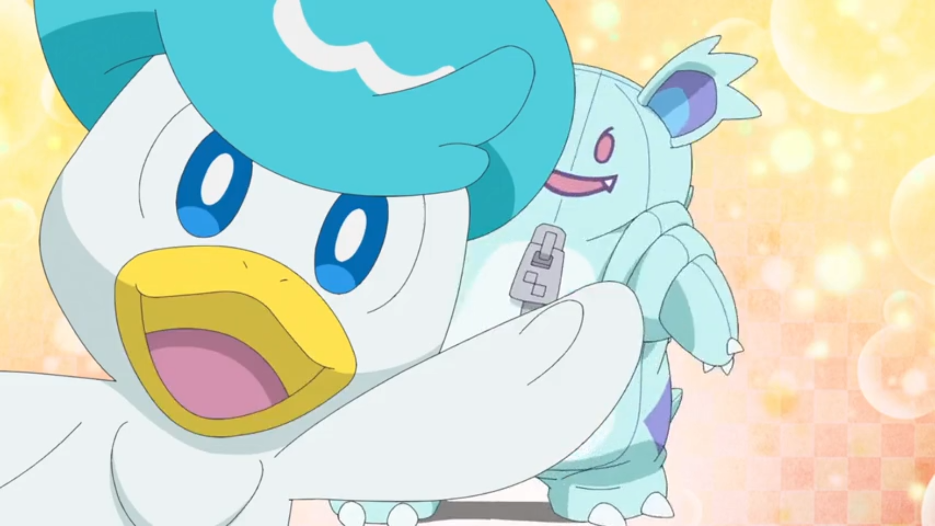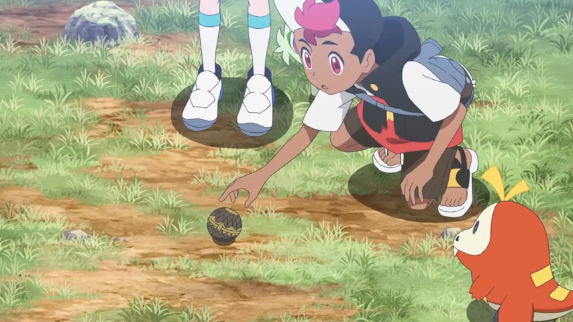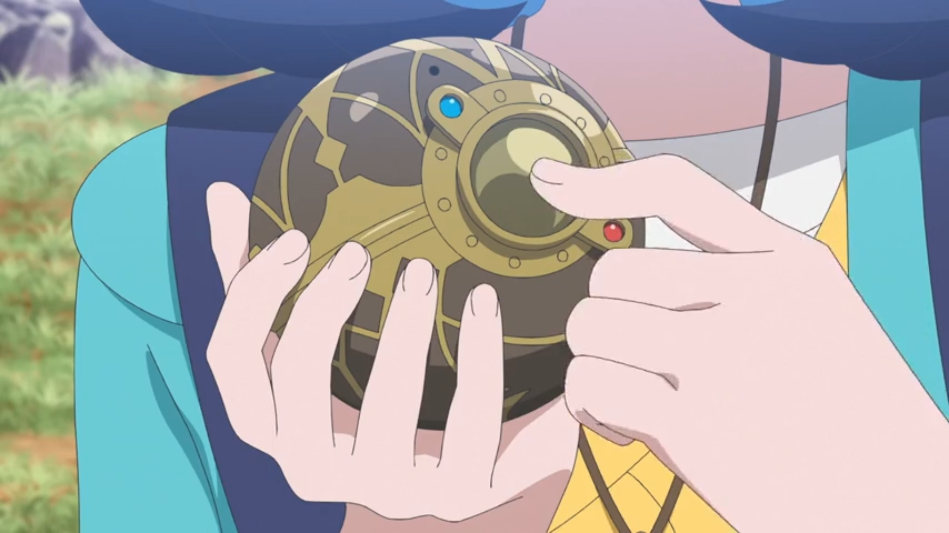 Plötzlich leuchtet Likos Anhänger auf und das mysteriöse Pokémon darin taucht wieder auf. Olithena beschwört darauf eine Kristallkugel, mit der es Liko, Rory und das Pokémon umschließt. Die Kinder erhalten daraufhin eine Art Vision einer Person, die sie darum bittet, etwas zu finden. Danach wandelt sich das Pokémon wieder in den Anhänger und Olithena nutzt den antiken Pokéball, um sich selbst zu einzufangen. Obwohl er sich selbst nach mehreren Versuchen nicht öffnen lässt, erkennen sie, dass Olithena sie wohl geprüft hat.