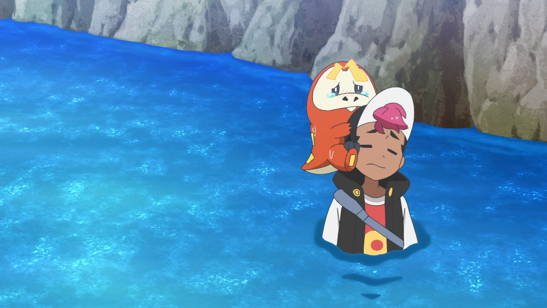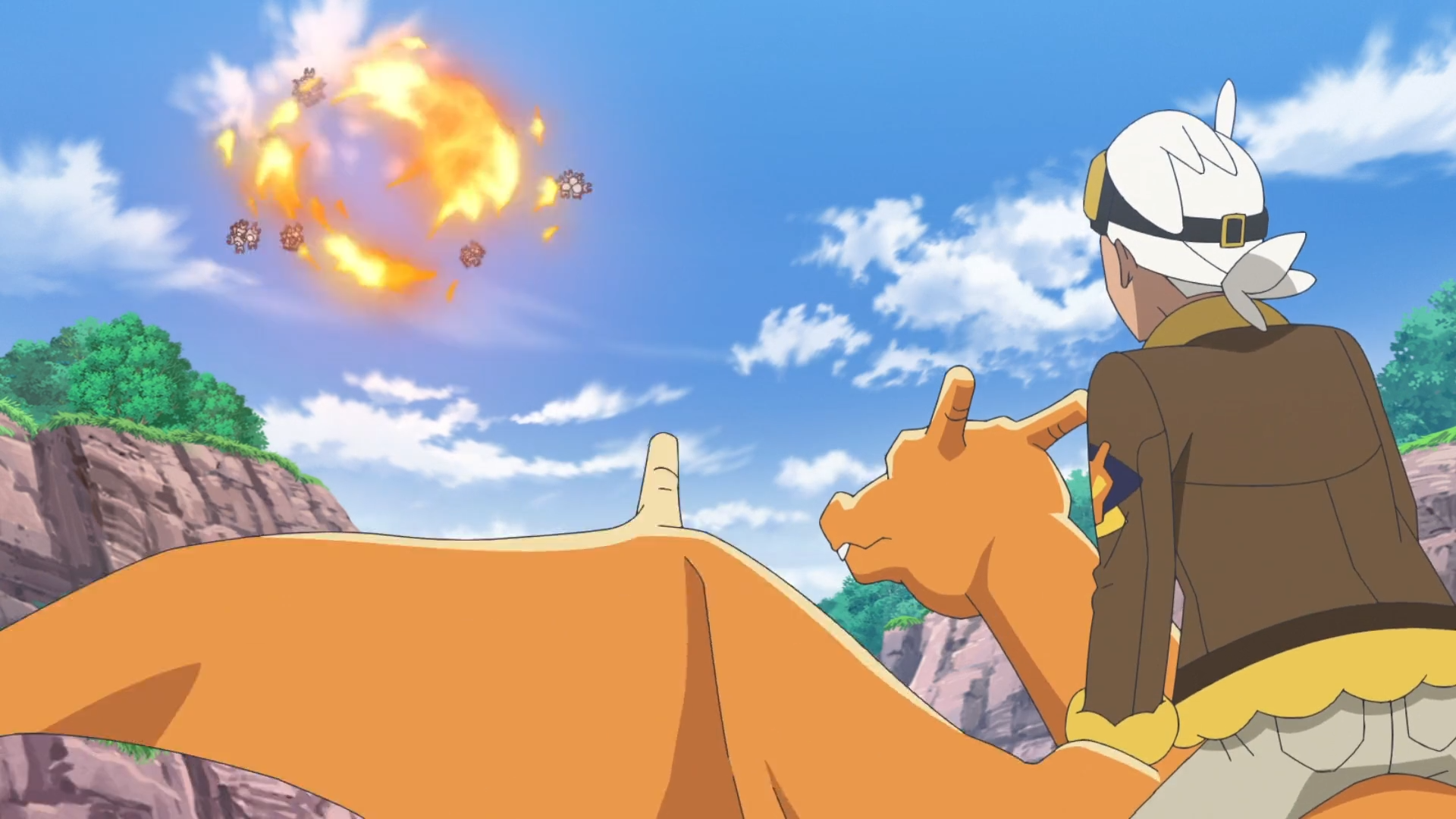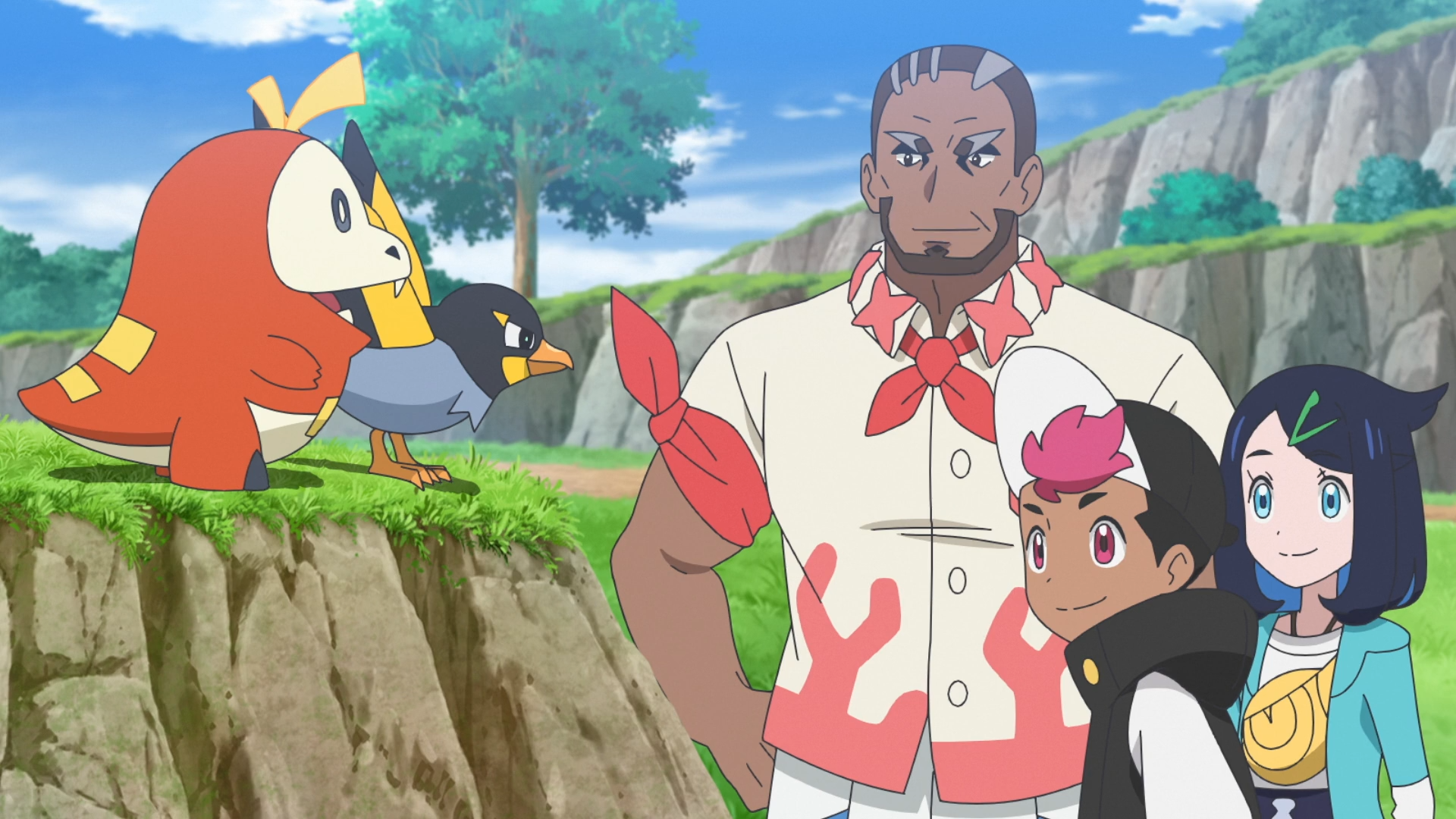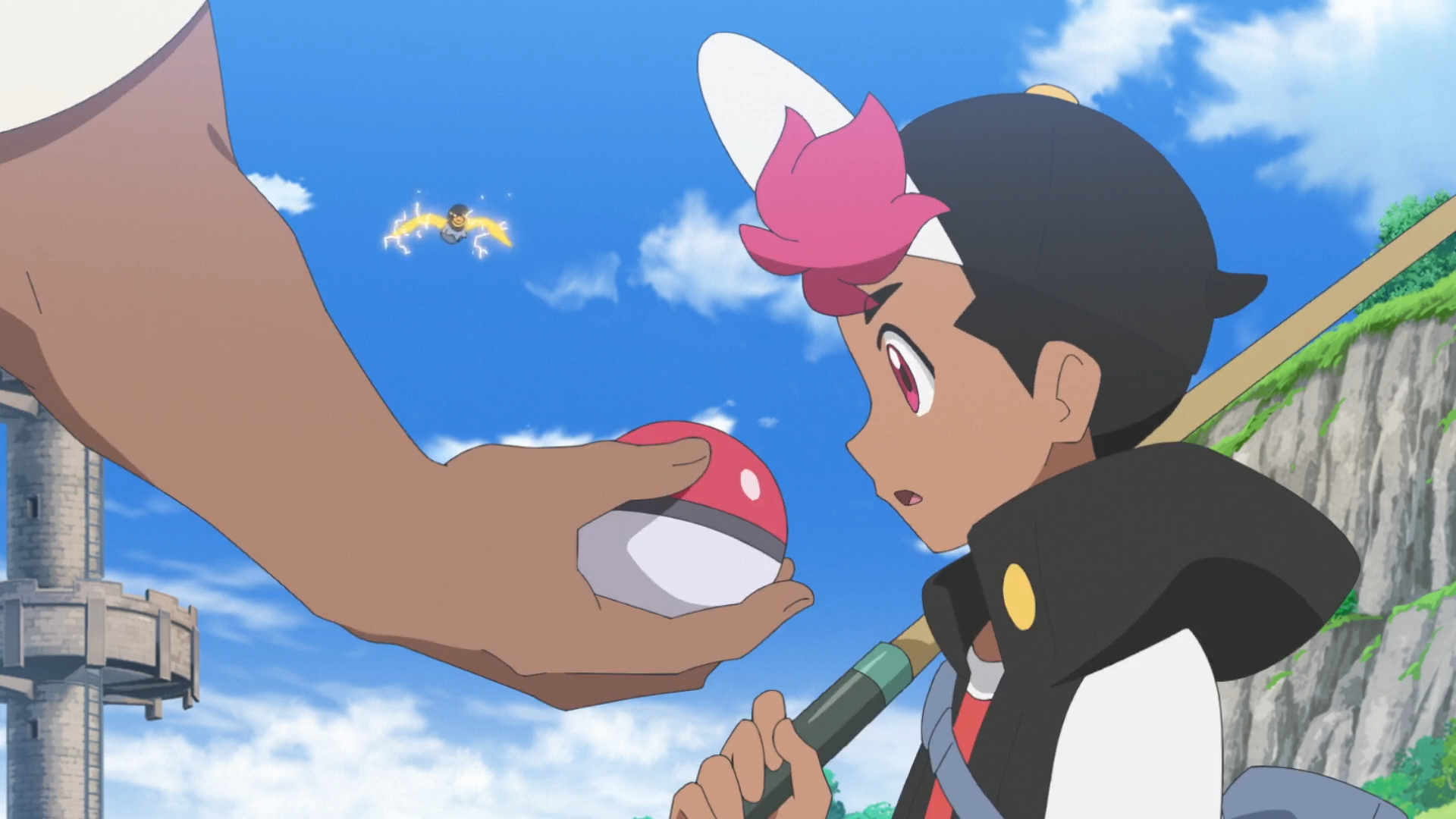 Nach dem erledigten Einkauf und einem genehmigten Eis kommen die beiden bei Rory an, der weiterhin mit Voltrel trainiert. Dieses Mal hat er Gras unter einem Vorsprung ausgelegt und möchte, dass sich das Pokémon zu springen traut. Nach einigen guten Zusprüchen traut es sich schließlich und erhält von den Anwesenden viel Lob für die Durchführung.