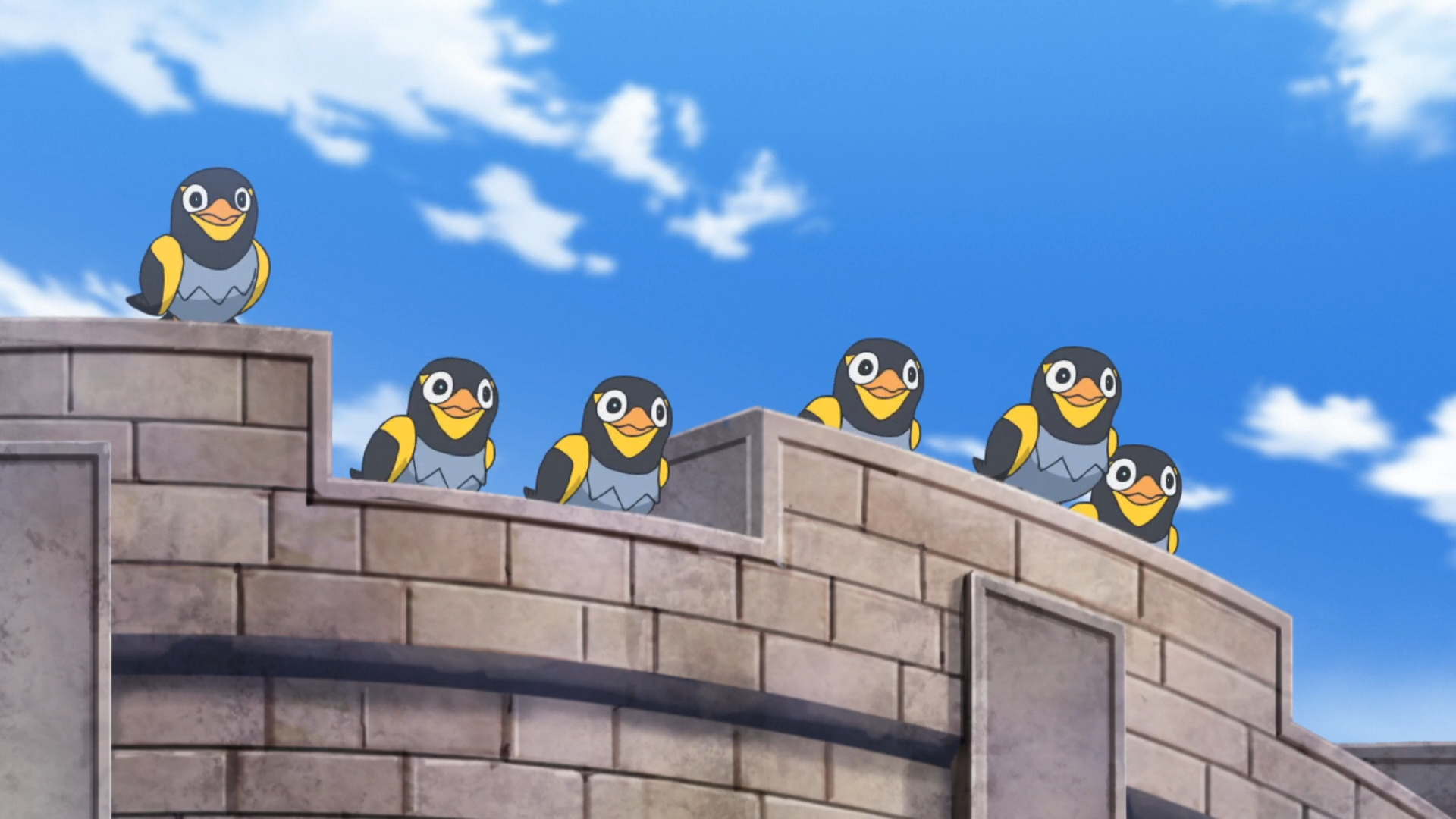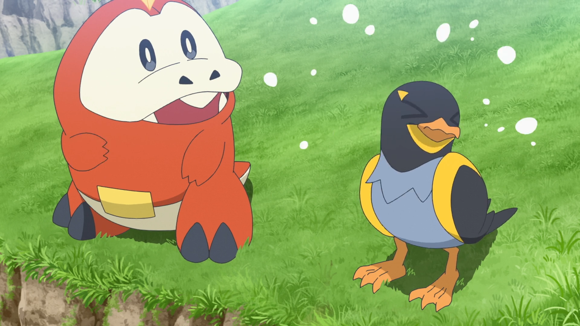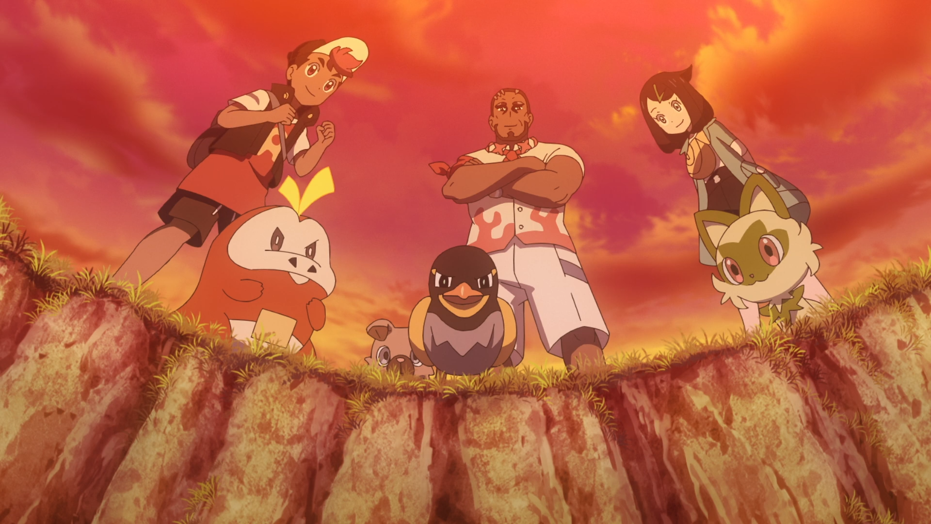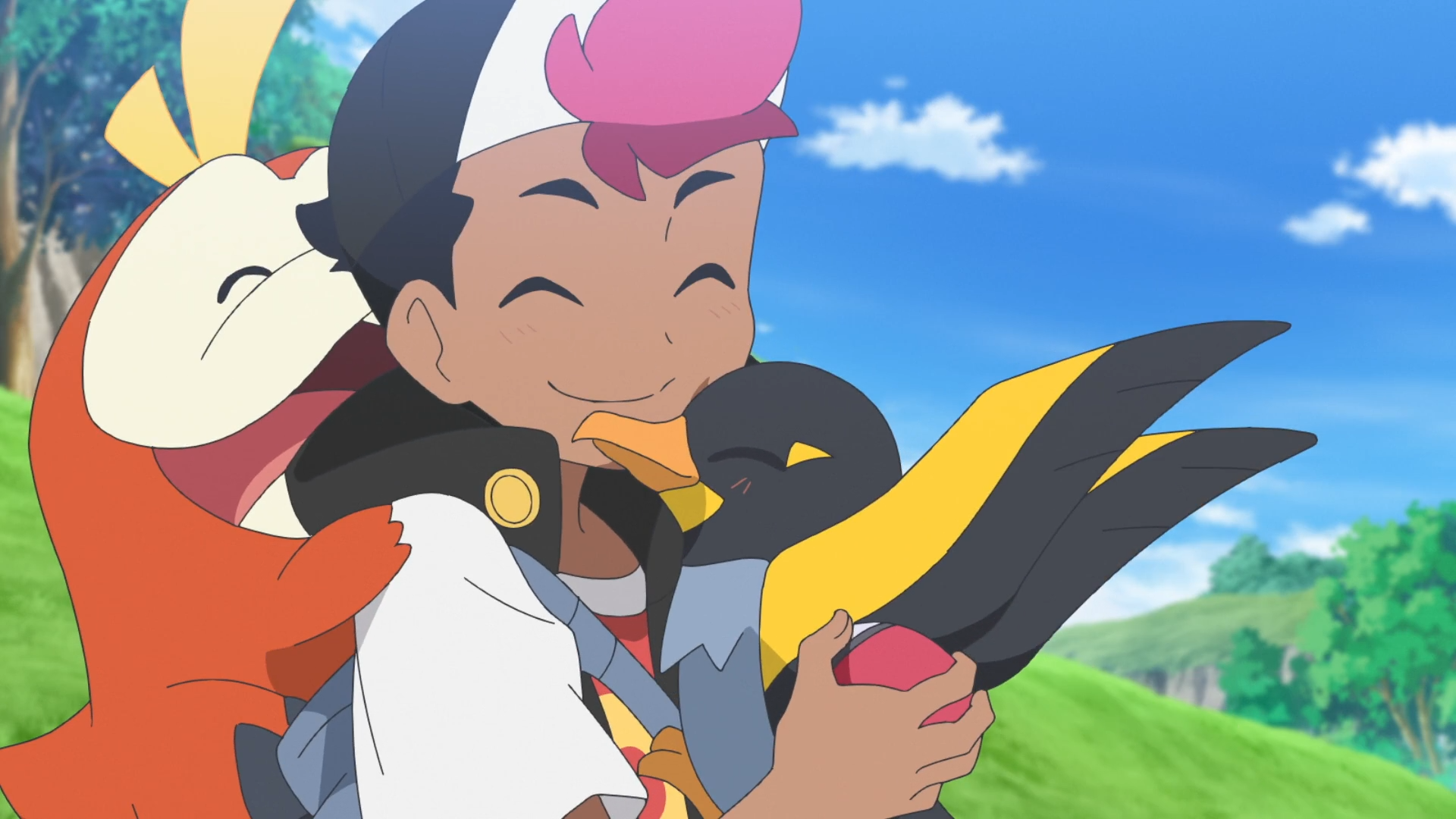 Nach dem erledigten Einkauf und einem genehmigten Eis kommen die beiden bei Rory an, der weiterhin mit Voltrel trainiert. Dieses Mal hat er Gras unter einem Vorsprung ausgelegt und möchte, dass sich das Pokémon zu springen traut. Nach einigen guten Zusprüchen traut es sich schließlich und erhält von den Anwesenden viel Lob für die Durchführung.
