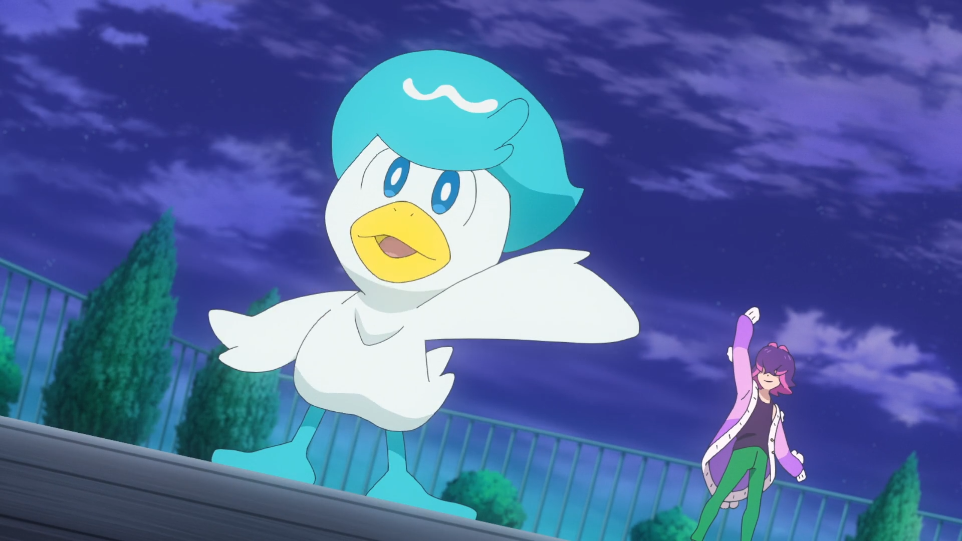 Mit Dot auf der Bildfläche erhält sie von Friedel einen Pokéball, um Kwaks offiziell zu fangen. Obwohl sie das Trainerdasein nie interessiert hat, geht sie der Bitte nach und wirft den Ball auf ihren Partner.