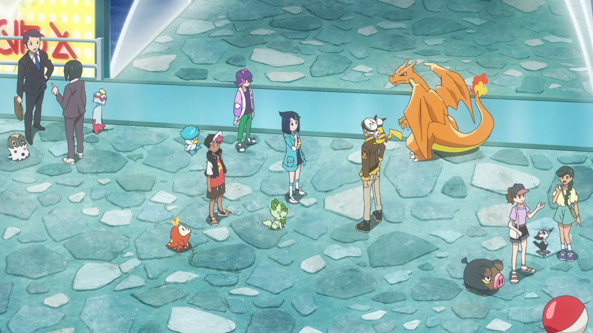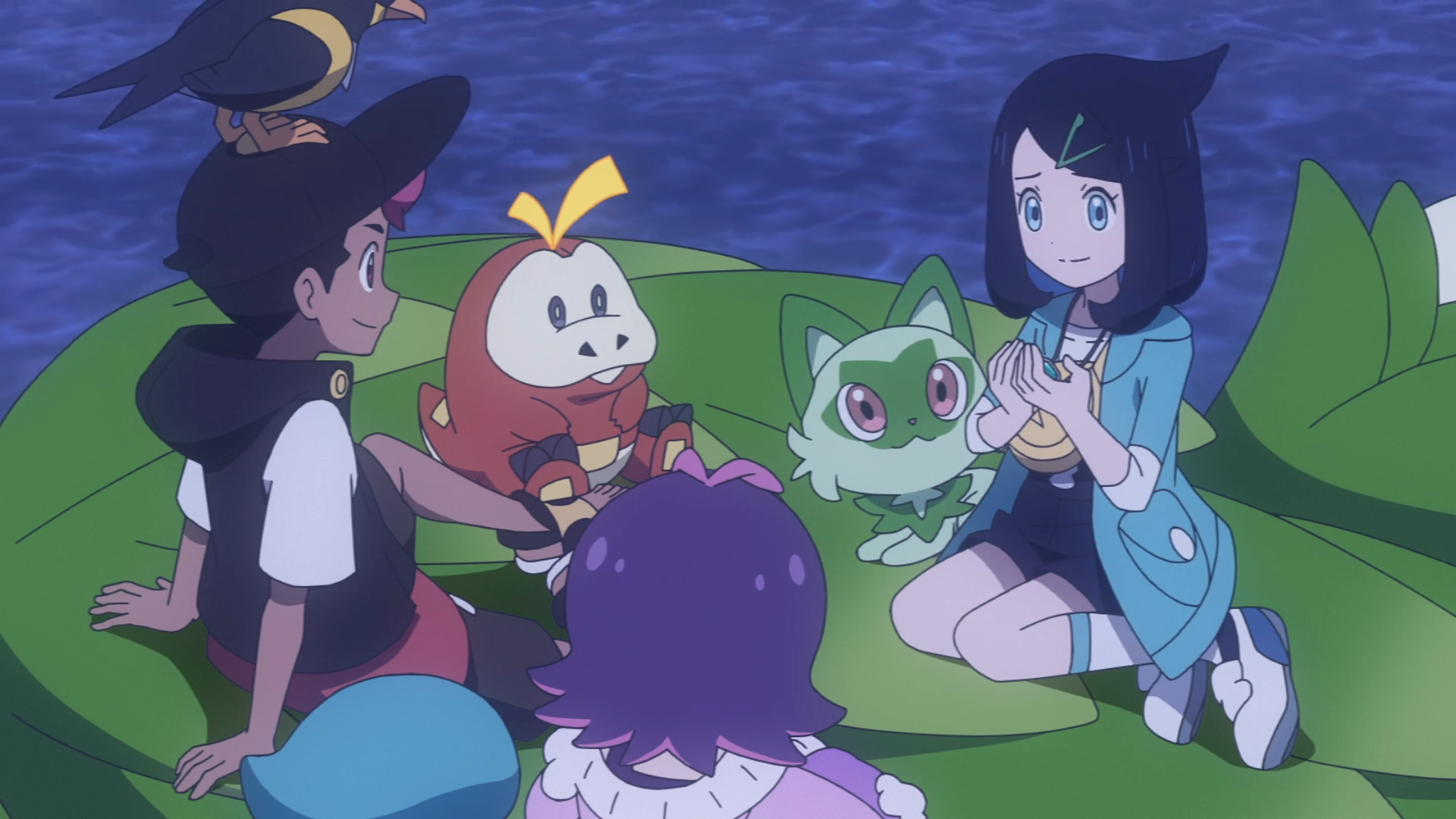 Im Hafen erzählt Liko den anderen beiden, worum es sich bei ihrem Anhänger genau handelt. Dabei erinnert sie sich an die vielen Erlebnisse mit Pokémon und Menschen, als plötzlich der antike Pokéball mit Olithena in ihrer Tasche aufleuchtet. Dot erinnert sich, dass die Bälle auf ihren Anhänger reagiert haben und Liko schlägt vor, in der näheren Umgebung danach zu suchen. Ohne Anhaltspunkte schlägt Kwaks vor, auf einen Frachter aufzusteigen und seine Trainerin folgt ihr.