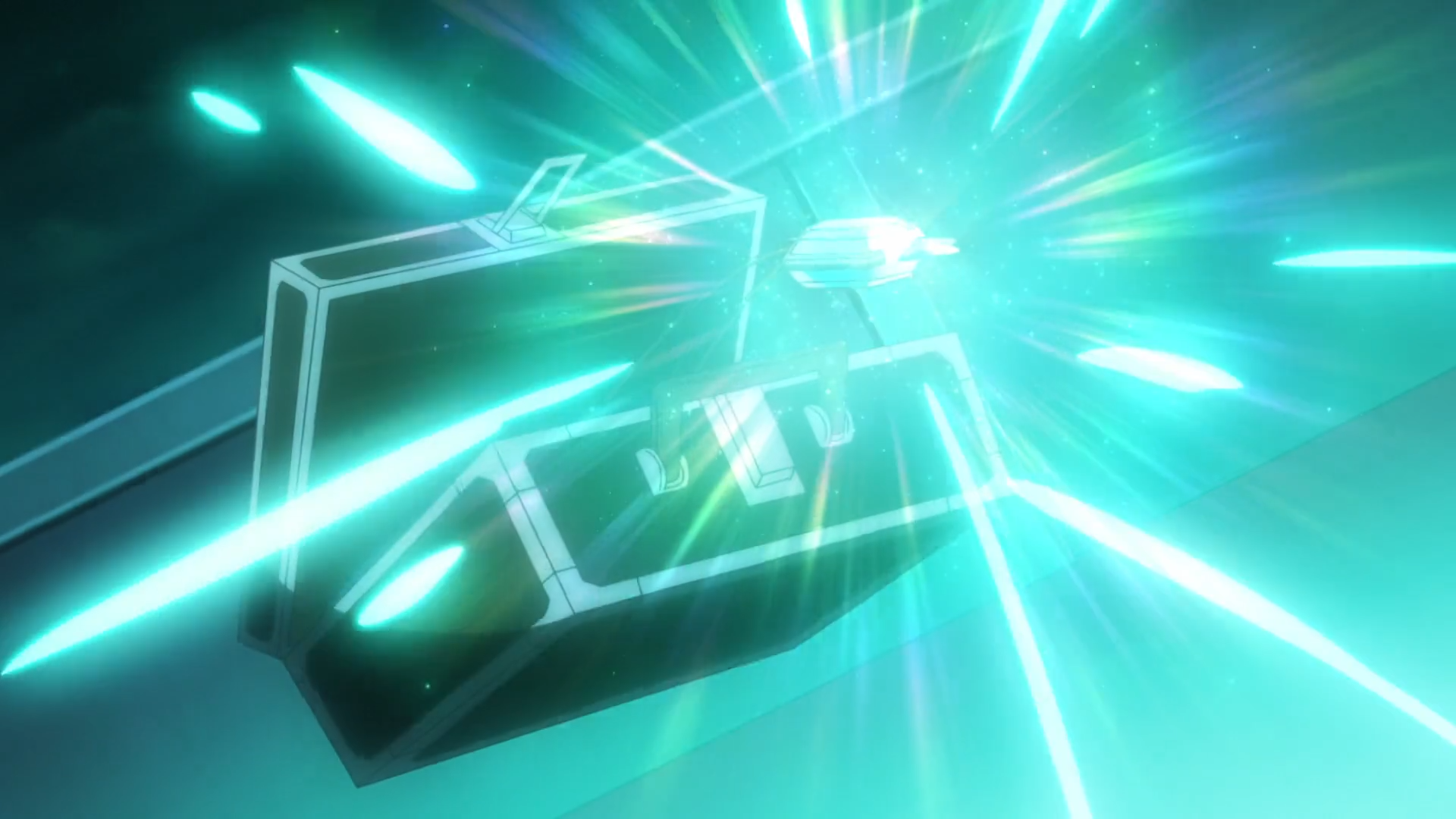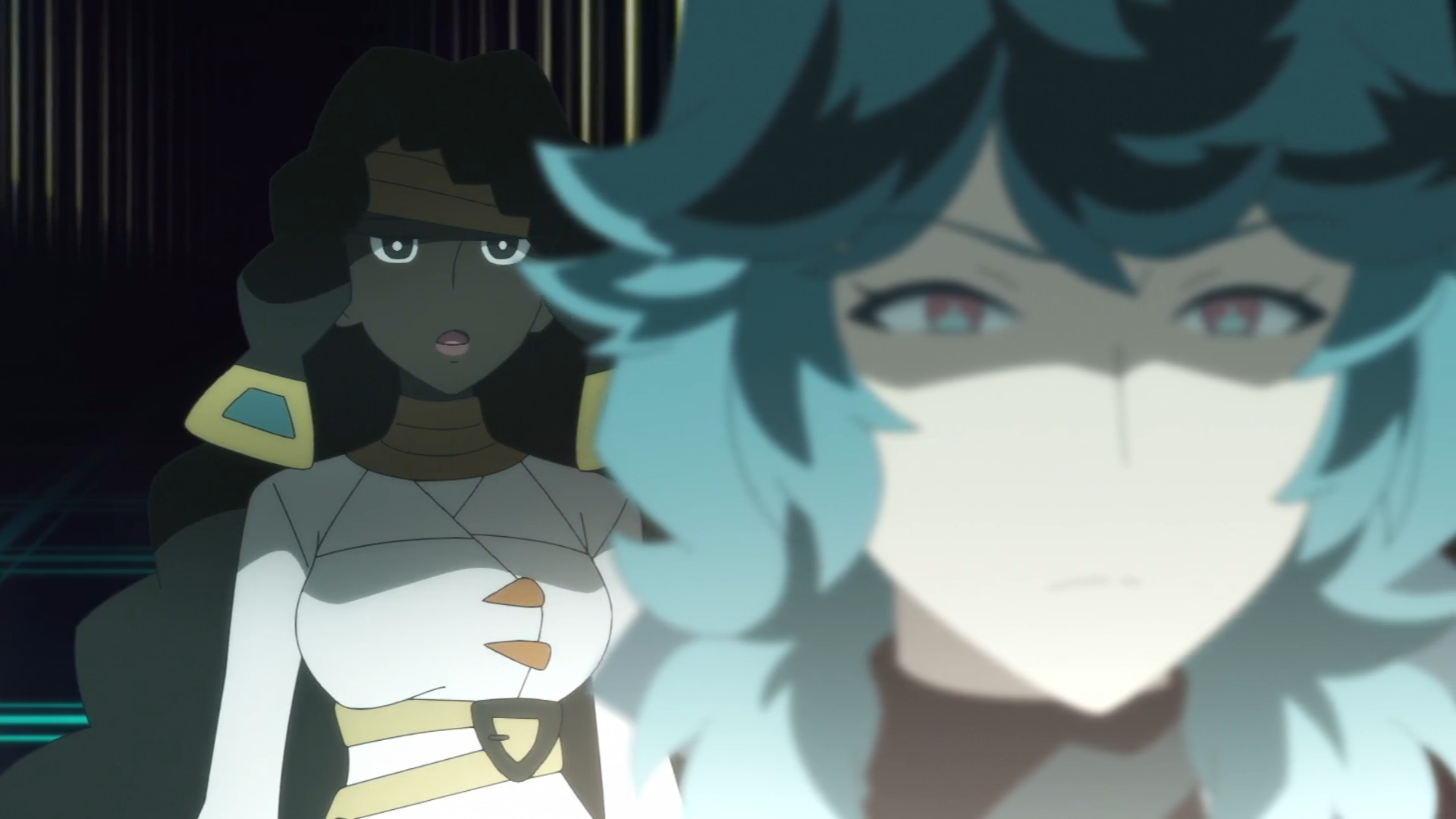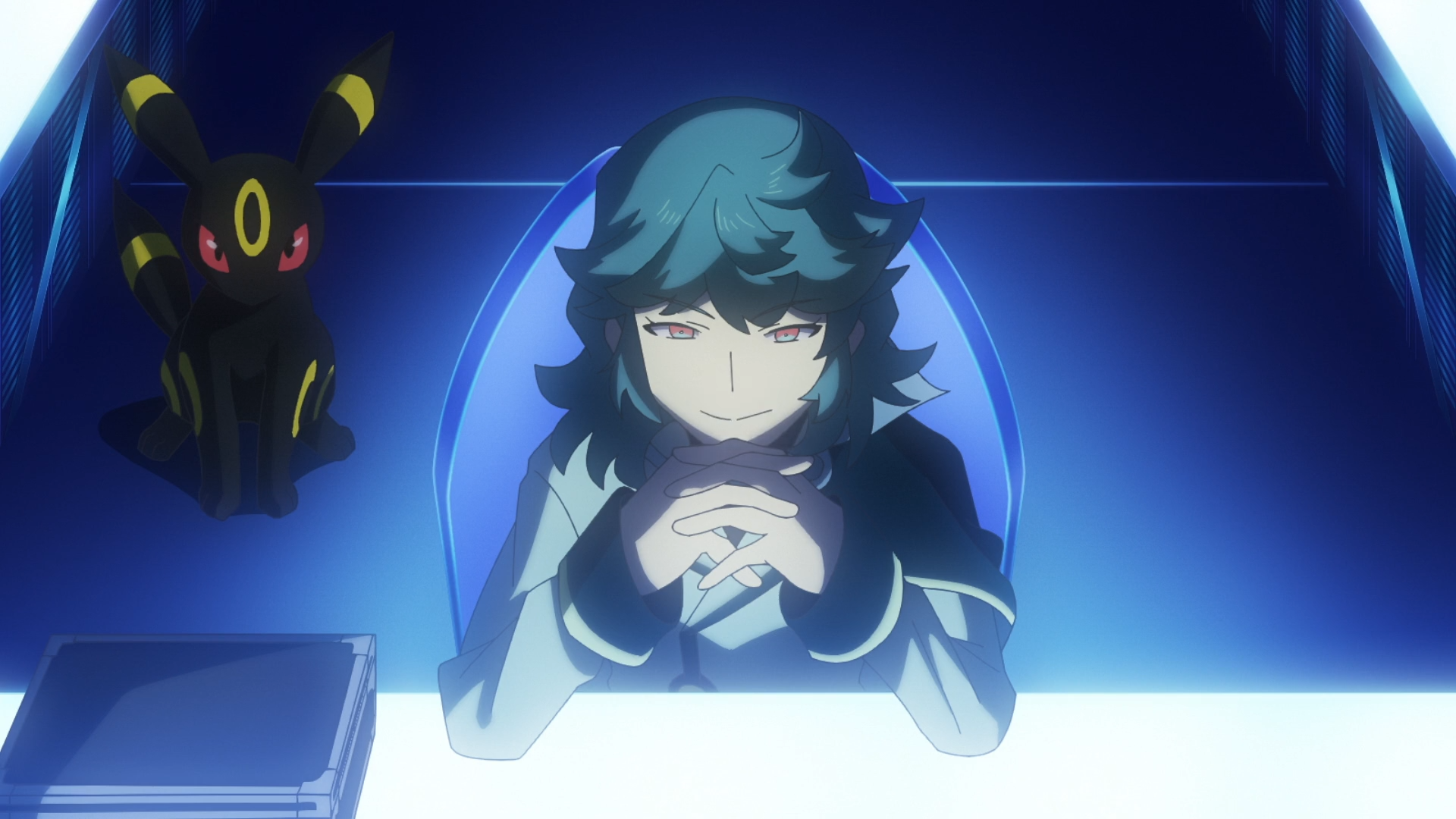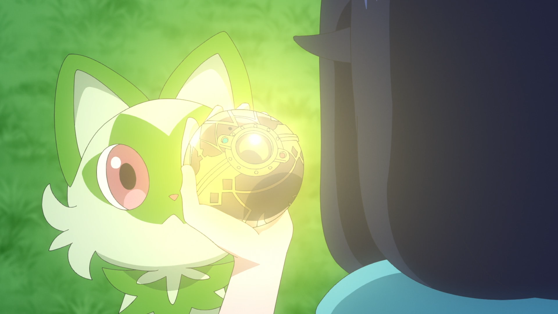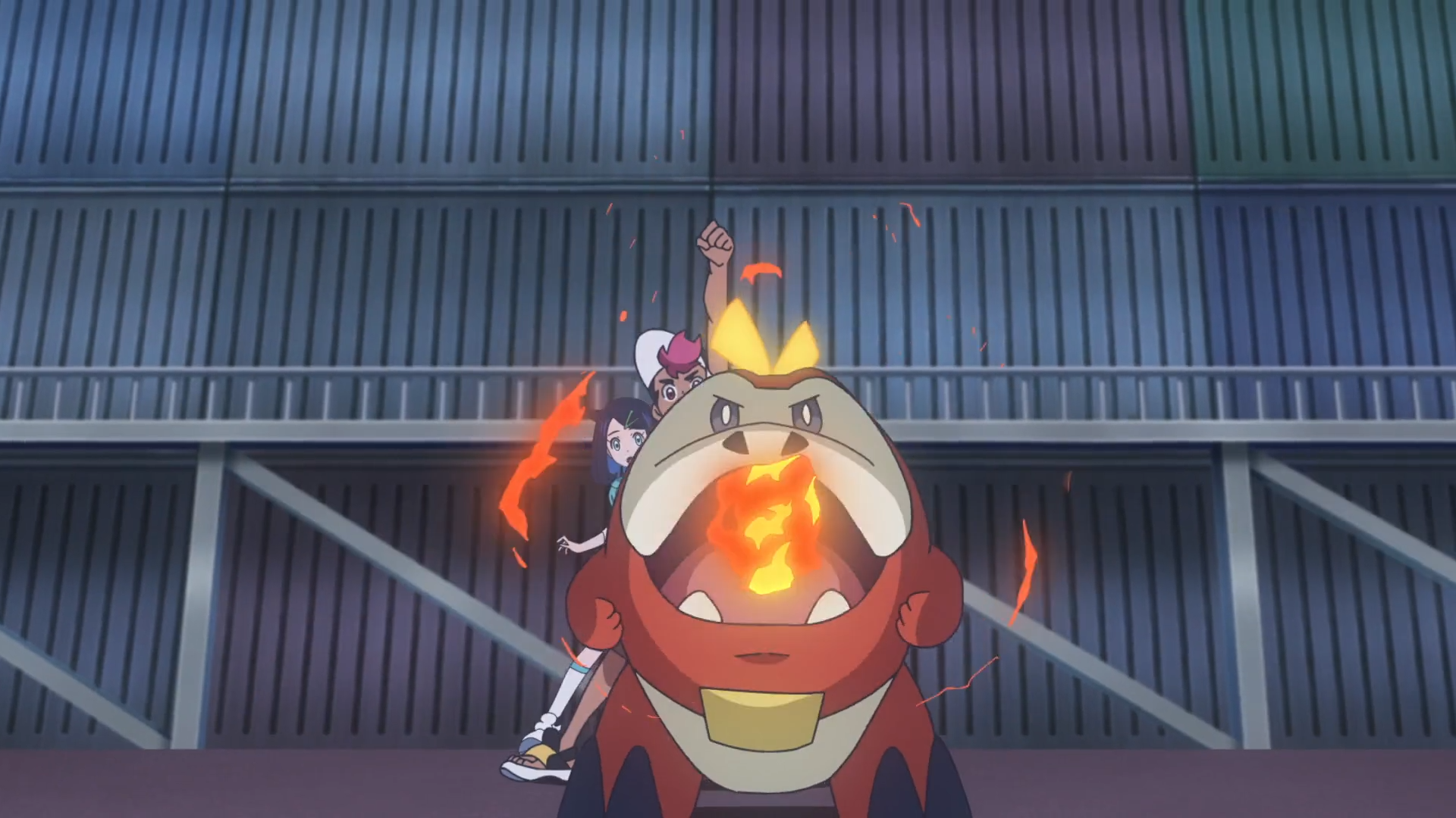 Als sich das Trio in der Übermacht sieht, erscheint Spinels Nachtara und setzt Standpauke ein. Sämtliche Pokémon werden von der Stärke ihres Gegners überrascht und sie fragen sie, wie sie es stoppen können. In Spinels Versteck leuchtet plötzlich der Anhänger im Koffer auf und verrät seine Position auf dem Schiff. Geblendet tritt er mit ihm nach draußen und durch eine Energiewelle lässt er den Koffer fallen. Der Anhänger fällt heraus und Felori kann diesen an sich bringen. Als Nachtara erneut zum Angriff ansetzt, reagiert der antike Pokéball auf das Schmuckstück und Olithena erscheint. Spinel ist begeistert von diesem Anblick und erkennt, dass Liko der Schlüssel ist, jedoch rät ihm Nachtara zum Rückzug. Olithena bildet auf dem Meer schließlich eine Art Boot, auf dem die Gruppe vom Frachter entkommen kann.