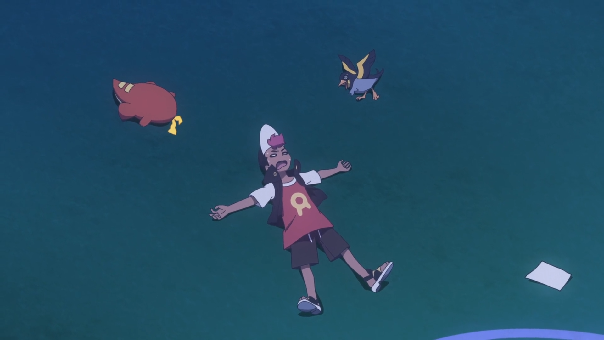 Liko ist noch immer nicht zur Ruhe gekommen, dass Nidothing in Wahrheit Dot ist. Während sie vor ihrem Zimmer auf und ab läuft, möchte Rory in Erfahrung bringen, wo Krokel und Voltrel sind. Sie finden die Pokémon schließlich auf dem Observationsdeck. Voltrel möchte den Sonnenschein genießen, jedoch stellt sich Krokel immer wieder vor es hin und wirft einen Schatten. Dadurch wird es so wütend, dass es einen Aufruhr startet, in den Krokel schließlich verwirrt mit einstimmt.
