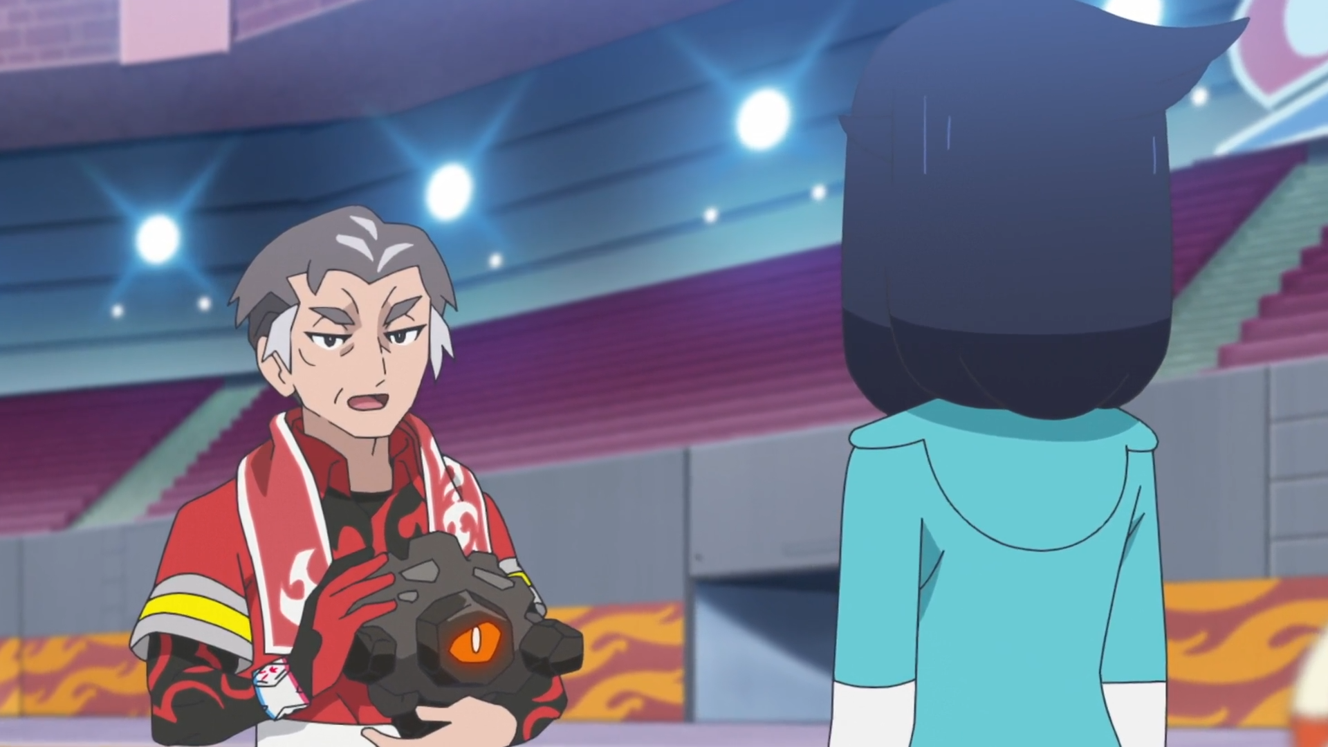 Vor dem Stadion in Engine City werden Liko und Rory schließlich von Wakaba begrüßt, die ihrerseits Arena-Trainerin in Ausbildung ist. Der Junge äußert, dass er Kabu gern etwas fragen möchte und sie begleitet die beiden in die Arena. Dabei schwärmt Wakaba von Kabu, da er nicht nur sehr diszipliniert, sondern auch in vielerlei Hinsicht atemberaubend sei.