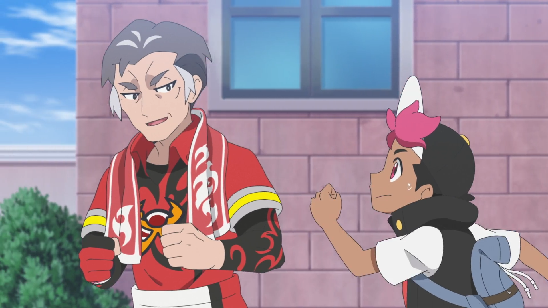 Als sich Kabu im Kampf-Café zu erkennen gibt, wird er von einer kleinen Menschenmenge umringt und ausgefragt. Er konnte den Süßigkeiten nicht widerstehen und bedankt sich zusätzlich für den dargebotenen Kampf. Besonders lobt er hierbei Feloris Blattwerk. Anschließend macht er sich wieder auf den Weg, bis Rory daran erinnert wird, dass er Kabu eigentlich auf Rayquaza ansprechen wollte. Er kann mit Liko den Arenaleiter einholen, allerdings werden sie nach einem abschließenden Anfeuerungsgruß zum Laufen wieder abgehängt.