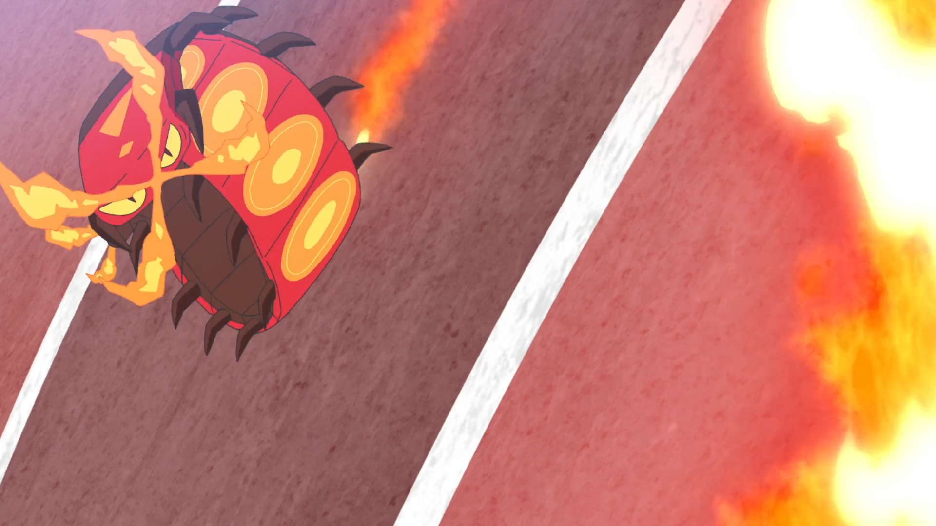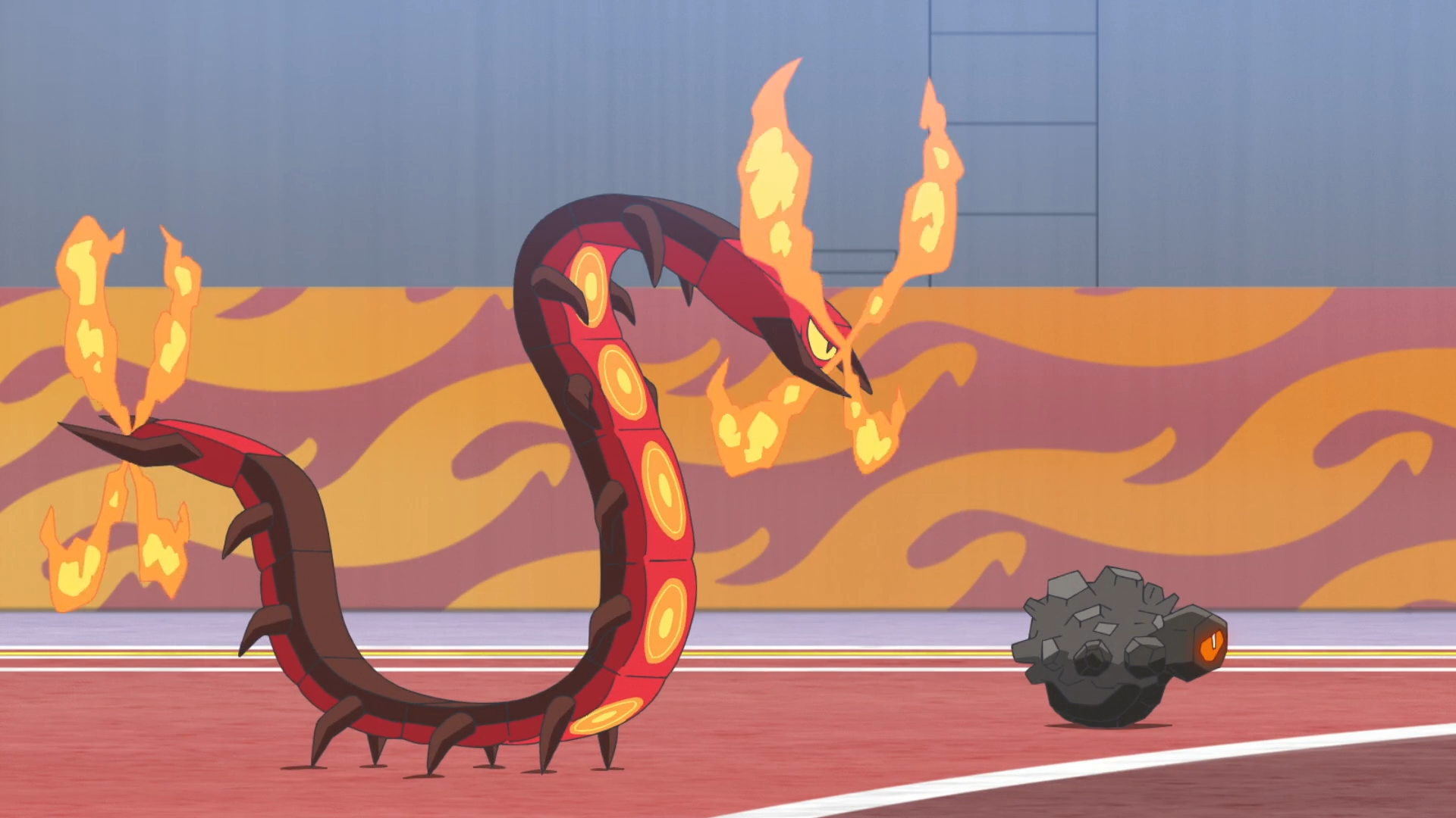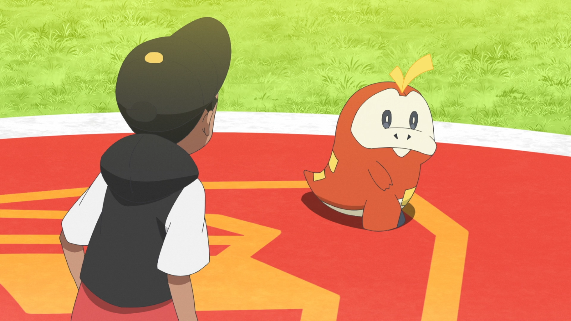 Kabu beschließt daraufhin, dass es mit diesem Qualitätstraining nun Zeit sei, einen Kampf gegen ihn zu wagen. Die Kinder sollen gegen sein Infernopod und Wakabas Klonkett antreten. Sie schwärmt über sein stärkstes Partner-Pokémon und im Anschluss startet der Kampf. Krokels Glut verpufft aufgrund von Infernopods Feuerfänger und Feloris Blattwerk macht ebenfalls keinen Schaden. Ihr Gegner setzt nun Flammenrad ein und direkt darauf Käferbiss. Rory schlägt vor, dass sie als Team arbeiten müssen und beginnen eine Gegenoffensive. Mithilfe von Blattwerk wird Infernopod geblendet, sodass die Pokémon ungehindert angreife können. Ihr Gegner drängt sie jedoch mit Flammenwurf zurück. Mit den nun geschwächten Pokémon stimmt Rory ein Anfeuerungslied an, um Krokel wieder zu Motivation zu verhelfen. Dieses setzt gegen Infernopod den nun gelernten Flammenwurf ein, wird jedoch von dessen Attacke zurückgedrängt und besiegt.