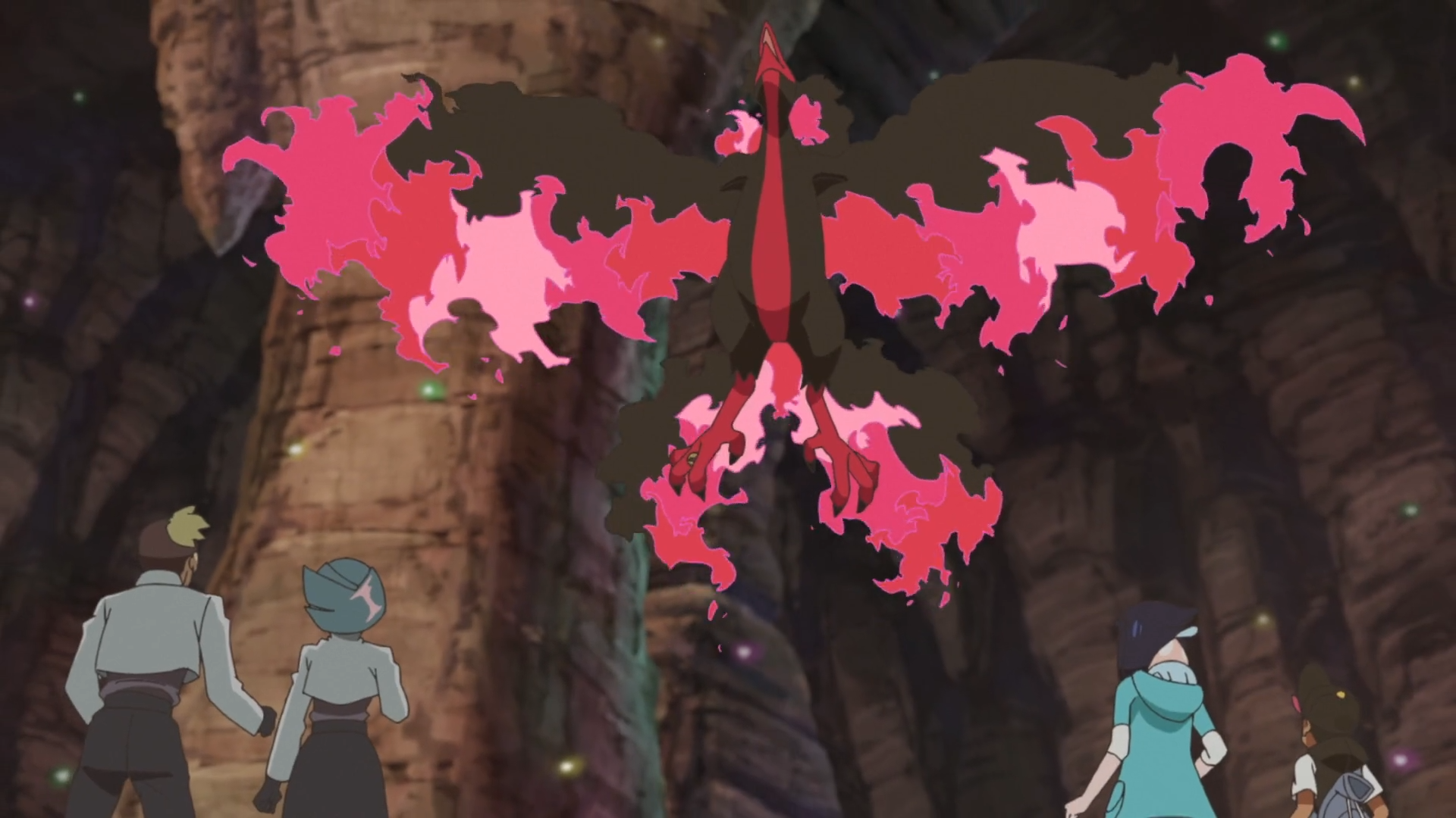 Aus der Felsspalte taucht nun ein Galar-Lavados auf, dem der Ruf von zuvor gehört. Liko ist überrascht, dass ihr Anhänger leuchtet und sie entdeckt zwischen Lavados’ Krallen einen antiken Pokéball. Mithilfe von Luftschnitt schaltet es die Pokémon von Zir und Conia aus, die daraufhin flüchten. Anschließend nutzt es Brennender Zorn, wodurch Liko, Rory und ihre Pokémon erschöpfen zurückbleiben. Pikachu kann einen Angriff auf Felori unterbinden, wird dadurch jedoch selbst in Mitleidenschaft gezogen.