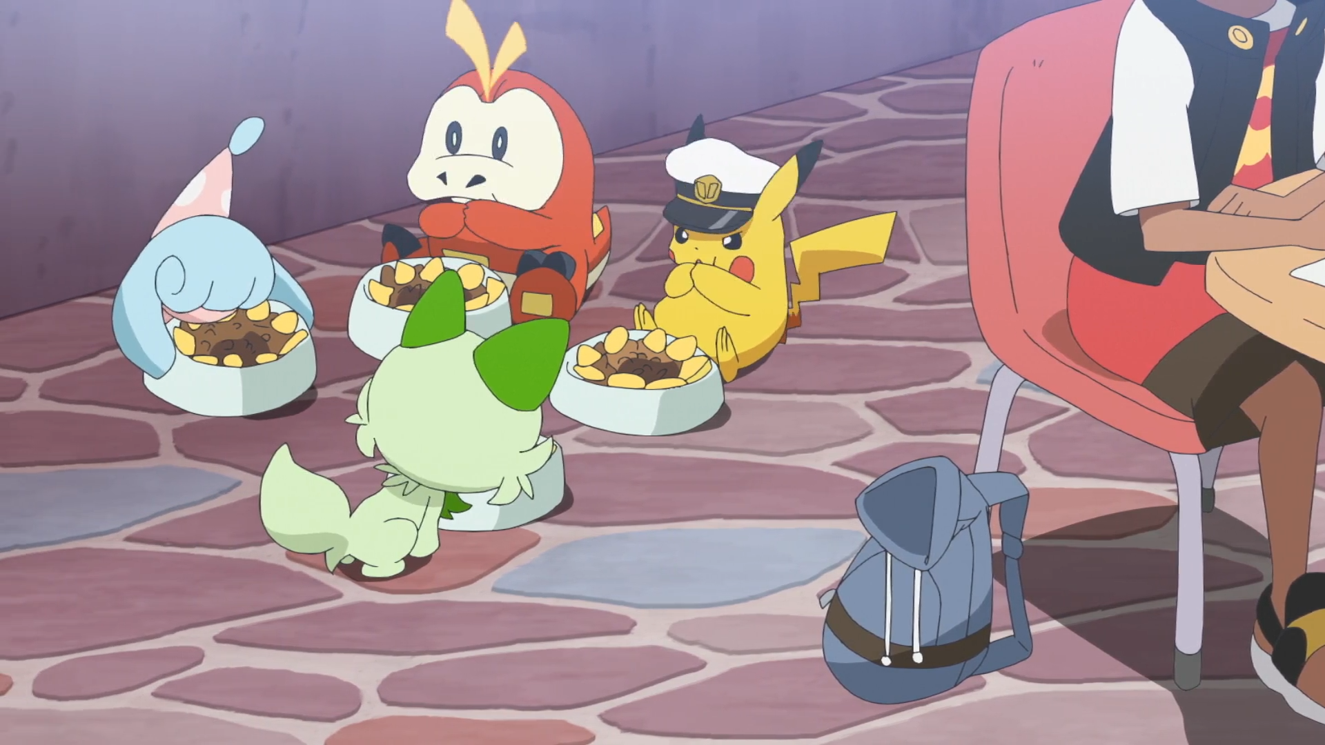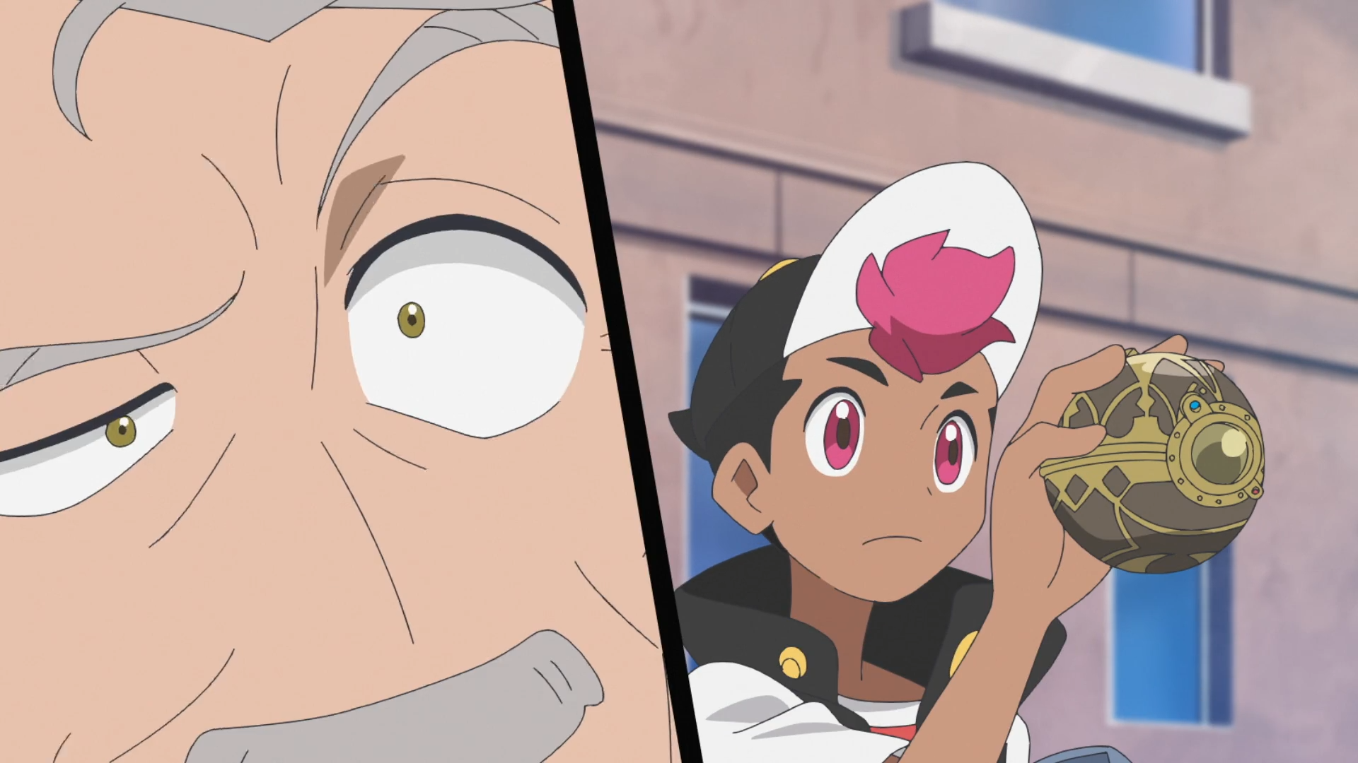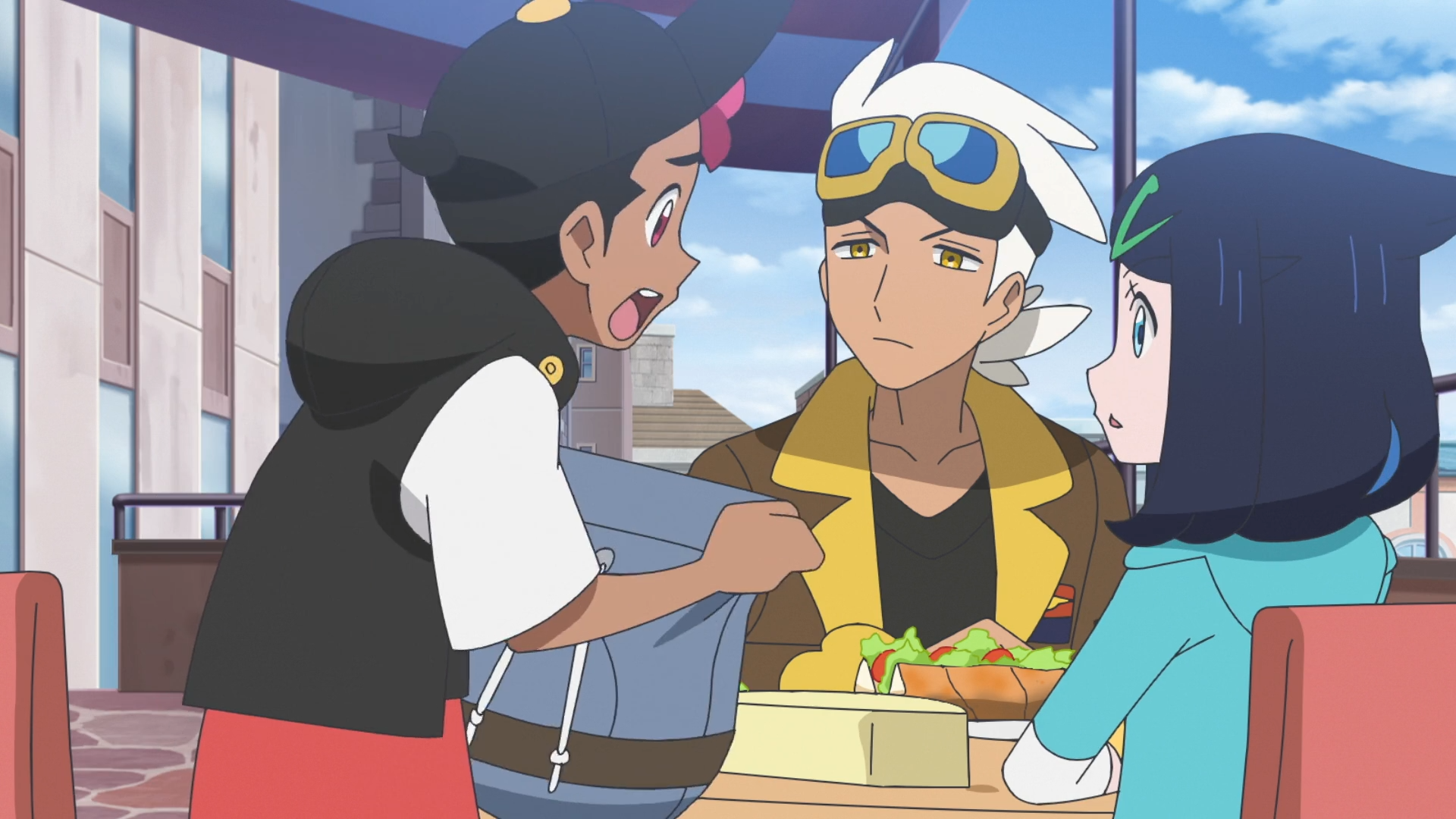 In einem Restaurant bewegt sich der Beutel und Felori faucht diesen an. Schließlich bricht ein Tarnpignon aus und flüchtet. Rory erkennt nun, dass sein antiker Pokéball verschwunden ist. Eilig laufen sie zum Stand des älteren Mannes zurück, jedoch ist dieser bereits mit seinen Pokémon Bronzel, Bronzong, Laternecto und Gramokles verschwunden. Friedel äußert die Vermutung, dass er den Ball absichtlich ausgetauscht hat. Die Gruppe teilt sich auf und versucht, den flüchtigen Mann zu finden. Über ein Telefonat informiert er seinen Auftraggeber, dass er etwas sehr Interessantes gefunden habe. Als er Friedel mit Glurak sieht, bindet er Laternecto den Beutel mit dem Ball um und die Pokémon verschwinden in einer Seitengasse.