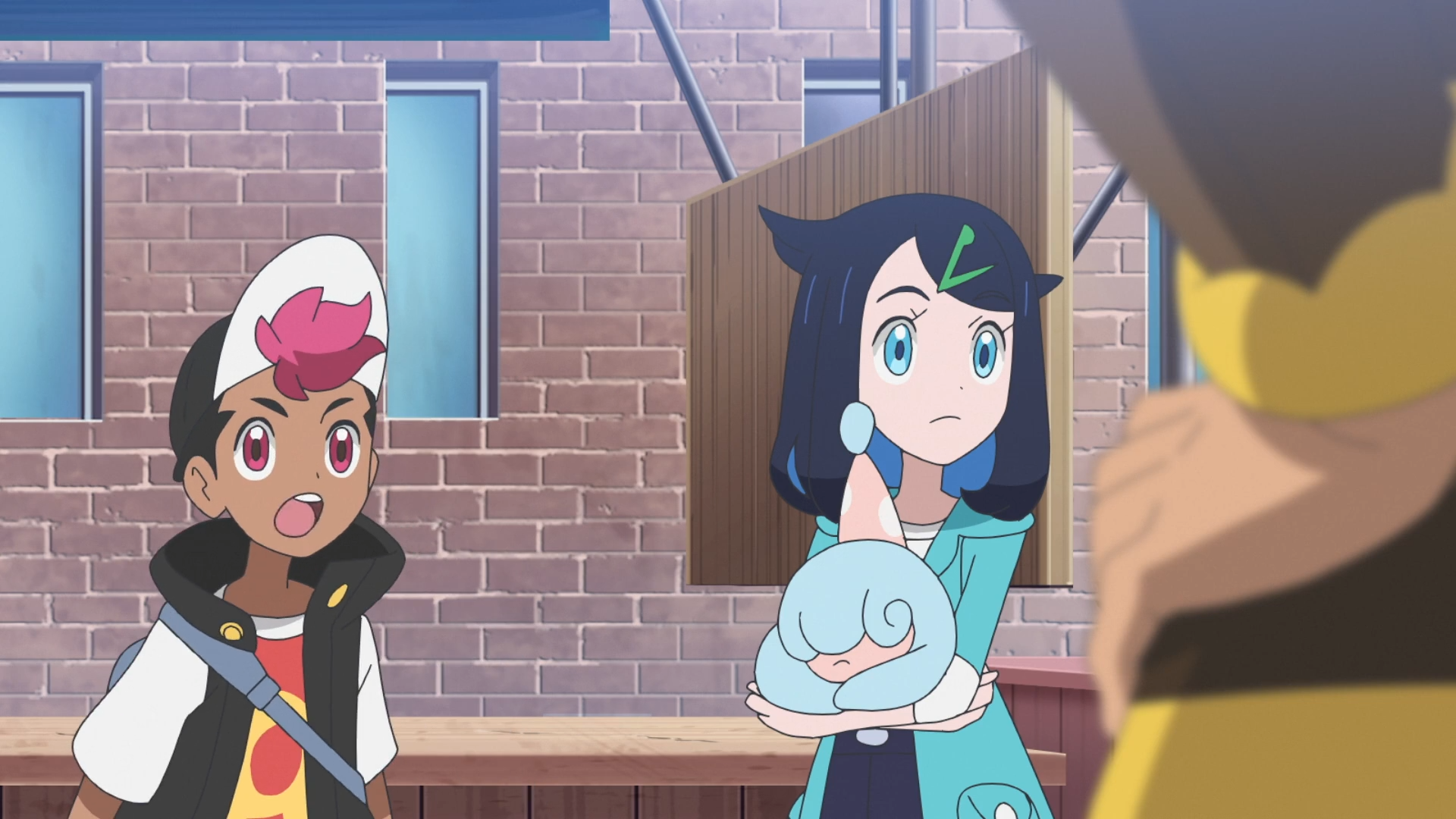 Auf einem großen Platz kann Liko Laternecto und Bronzel aufhalten. Felori nutzt Blattwerk, um sie abzulenken und Brimova kann mittels Psychokinese und einer Schaufel das Band des Beutels durchtrennen. Der ältere Mann und die übrigen Pokémon erscheinen nun ebenfalls auf der Bildfläche und beschaffen wieder den Beutel für sich. Er erwähnt dabei, dass jemand an seinem Stand vorbei kam und eine große Menge Geld für solch Lucius Ball zahlen würde. Nach einigen Attackenwechseln, bei denen Rory zusätzlich Voltrel gerufen hat, hüpft Tarnpignon mit dem potenten Schlafmittel vorbei. Es schläfert nicht nur die Pokémon der Kinder, sondern auch sich selbst ein.