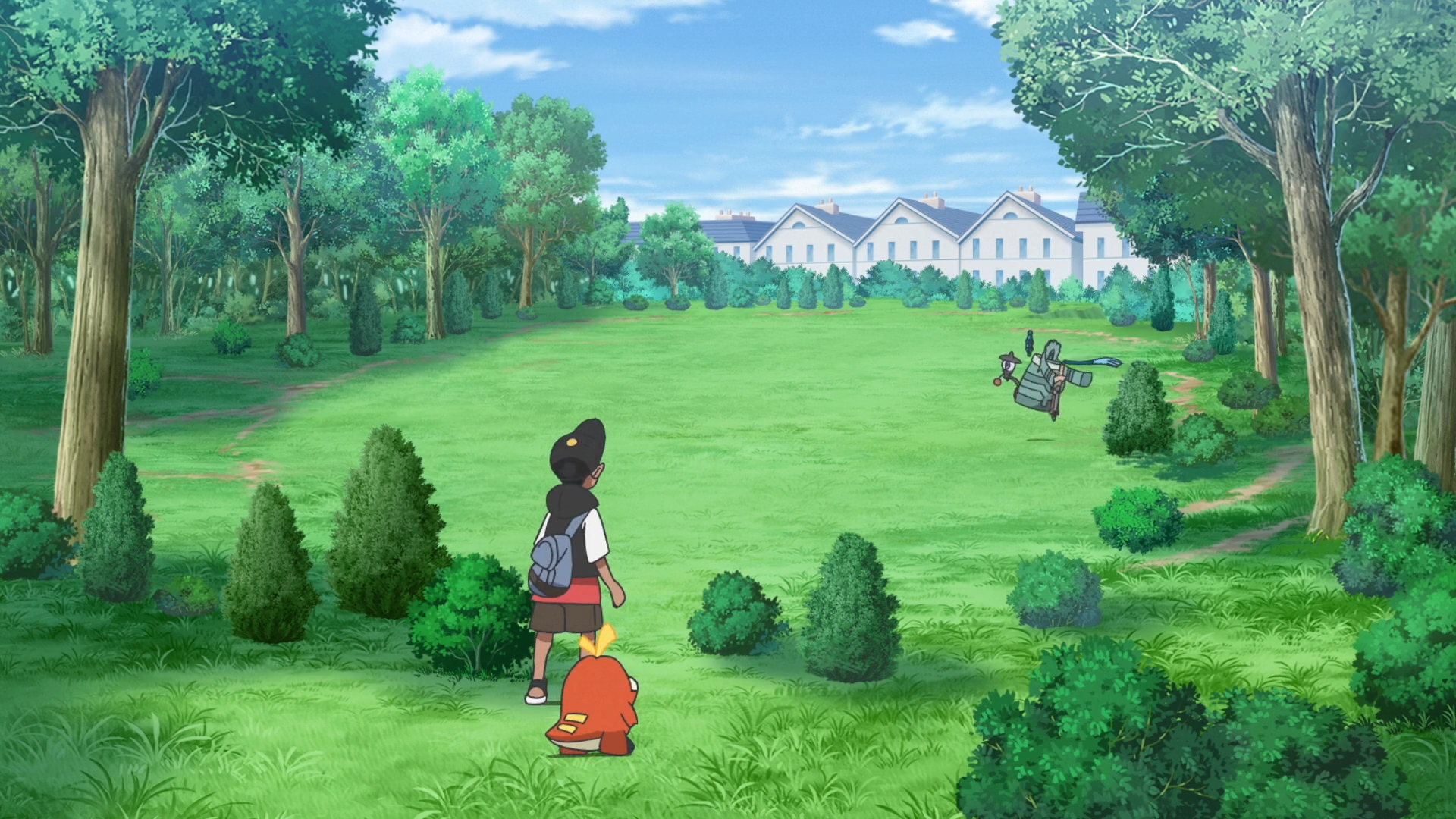 Das nächste Ziel ist ein großer Park. Dort stellen Liko und Rory die Pokémon auf einer offenen Rasenfläche. Gramokles und Bronzong bleiben zurück, um Krokel mit einigen kombinierten Attacken aufzuhalten. Anschließend ergreifen sie ebenfalls wieder die Flucht.