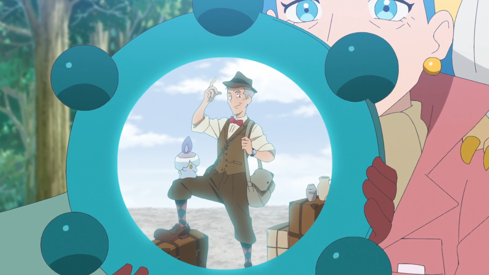 Captain Pikachu erledigt die Sache schließlich mit einem Donnerschlag und der Beutel mit dem antiken Pokéball wird zurückerlangt. In Anwesenheit von Diana wird der ältere Mann nun zur Rede gestellt. Der Text, den er ihr einst verkauft hat, hat sich als Fälschung herausgestellt. Sie ist enttäuscht darüber, dass er doch kein guter Freund ist und gibt Arkani den Befehl, ihn zu rösten. Liko kann sie jedoch schnell davon abhalten. Als Diana nach den Gründen fragt, erwähnt sie, dass der Mann ebenfalls einmal ein Abenteurer war und die Geschichte mit dem Ariados-Netz wahr ist. Anschließend zeigt sie ihm Bronzels Rückseite, wo ein Bild seiner Selbst als Abenteurer erscheint. Der Mann denkt, zu viel Angst zu haben, aber Diana versichert ihm, dass nur der erste Schritt schwierig ist. Zudem redet sie ihm ins Gewissen, ob er wirklich möchte, dass ihm die Pokémon bei bösen Taten helfen. Bewegt durch die Worte bricht der Mann in Tränen aus und entschuldigt sich. Er beschließt, wieder von vorn anzufangen und irgendwann wieder Ruinen zu suchen. Zudem erzählt er den Aeronauten, dass sein Auftraggeber eine Pokéball-Handwerkerin war. Sie beschließen, diese Person aufzusuchen.