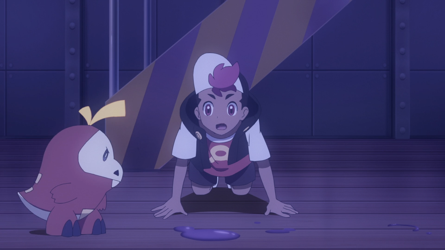 Liko und Rory trainieren ihre Pokémon wieder gegen Captain Pikachu. Während ihr Gegner mit Leichtigkeit ausweicht und zu einem Donnerschlag ansetzt, rutscht Krokel auf einer merkwürdigen violetten Flüssigkeit aus. Rory schlägt vor, nach dem Übeltäter zu suchen. In der Nähe der Reling kann Pikachu dabei Lucius Schatten ausnehmen.