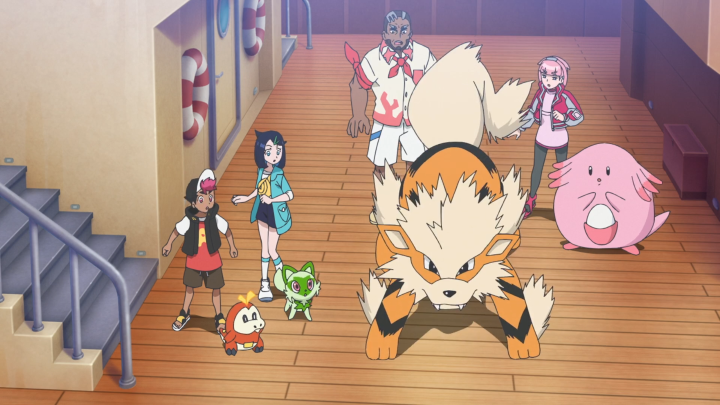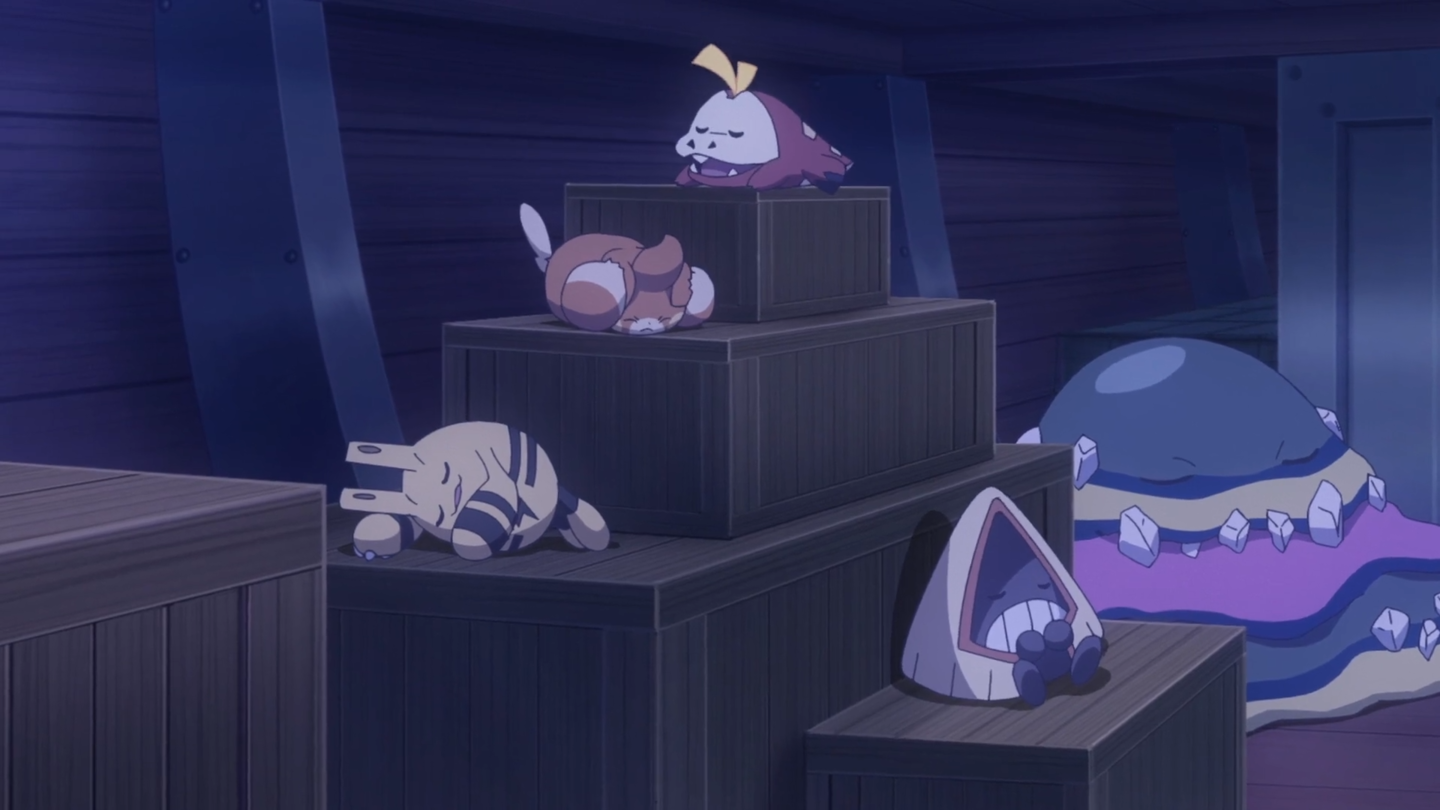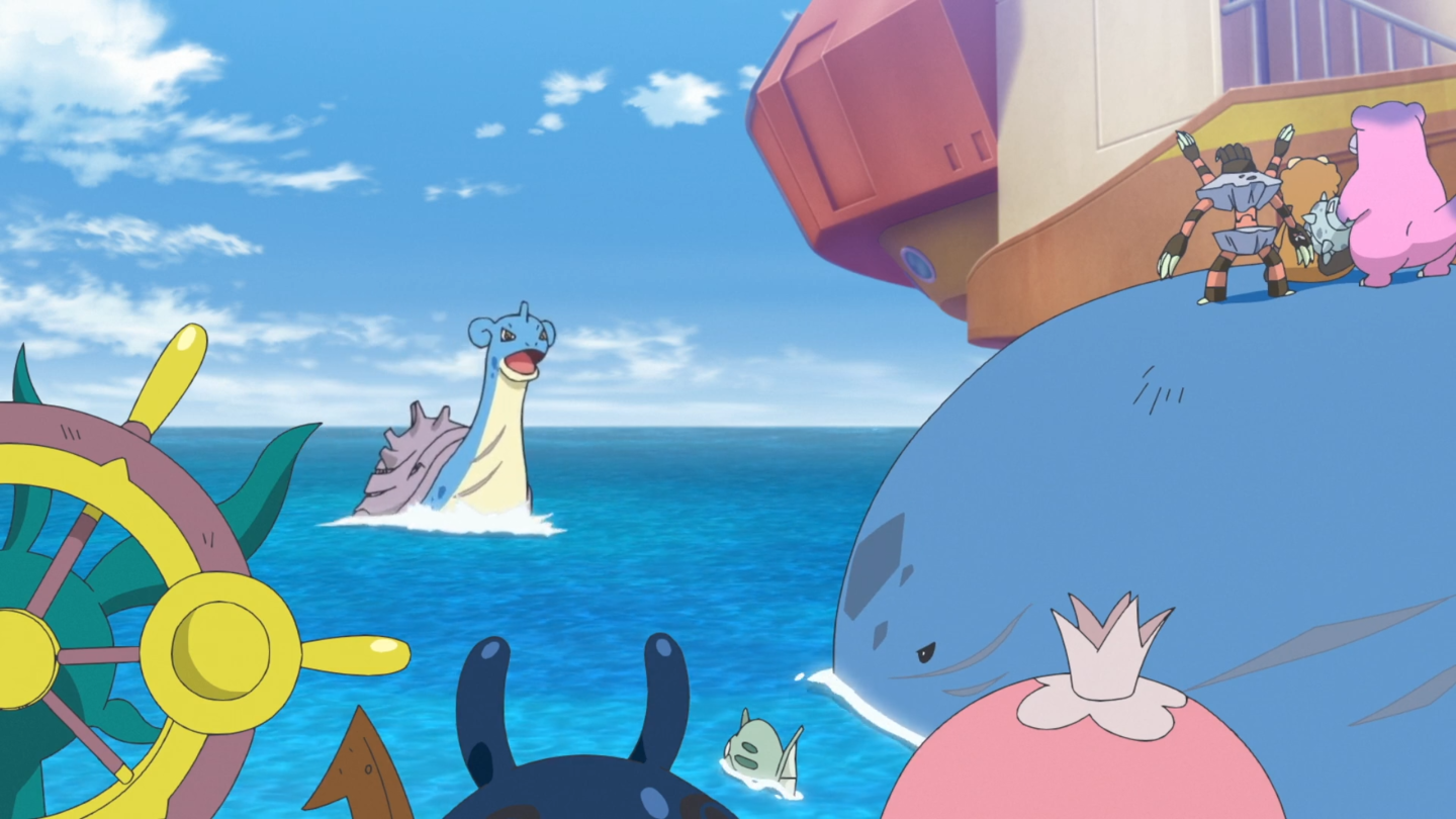 Auf die Frage, wie es nun weitergehen soll, ist Friedel motiviert, Lapras weiter zu verfolgen. Dass es sich irgendwo auf diesem Meer befindet, sorgt allerdings nicht für große Freudensprünge bei der Crew. Liko schlägt angesichts einer auf dem Wasser treibenden Kiste vor, nicht Lapras zu verfolgen, sondern auf es zu warten. Im Anschluss holt sie aus ihrem Zimmer, den Gürtel, den Lucius einst trug und schnallt sich diesen um. Sie möchte nämlich gerne Lapras kennenlernen, da es bei Terapagos’ Anblick gezögert hat, als würde es gerne etwas sagen wollen.