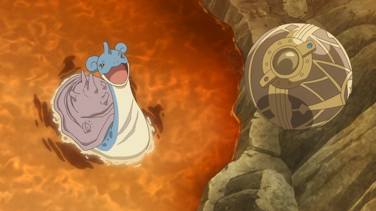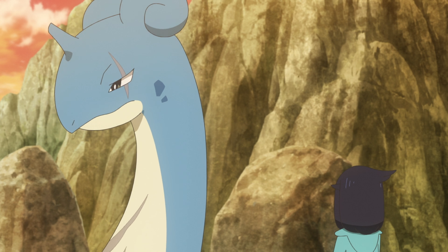 In einer Höhle beim nahegelegenen Riff warten die Aeronauten schließlich, bis das Pokémon eintrifft. Lapras ist überrascht und wütend darüber, die Menschen zu sehen. Bei Terapagos’ Anblick, das sich in der Zwischenzeit mit sämtlichen wilden Pokémon angefreundet hat, kann es sich jedoch für den Moment beruhigen. Es hört Liko aufmerksam zu, während sie von Lucius und dem Paradies erzählt. Sie wünscht sich, dass ihm Lapras dabei hilft, das versteckte Land zu suchen.