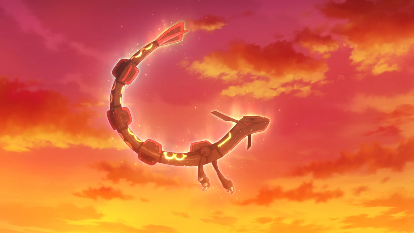 Terapagos blickt schließlich nach einem kurzen Nickerchen in den Himmel, wo sich das schwarze Rayquaza befindet.