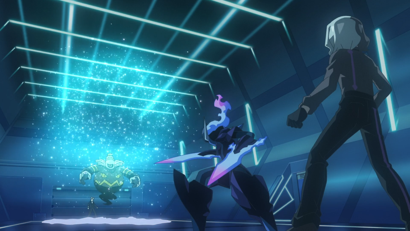 In der Basis der Entdecker steht Amethio Gibeon gegenüber. Er ist nach wie vor nicht erfreut, dass ihm das schwarze Rayquaza entwischt ist, denkt aber, von ihm getestet worden zu sein. Zudem ist er entschlossen, es beim nächsten Mal zu fangen. Terapagos und das schwarze Rayquaza sind laut Gibeon der Schlüssel zum Paradies Lakua. Anschließend beendet er die Verbindung.
