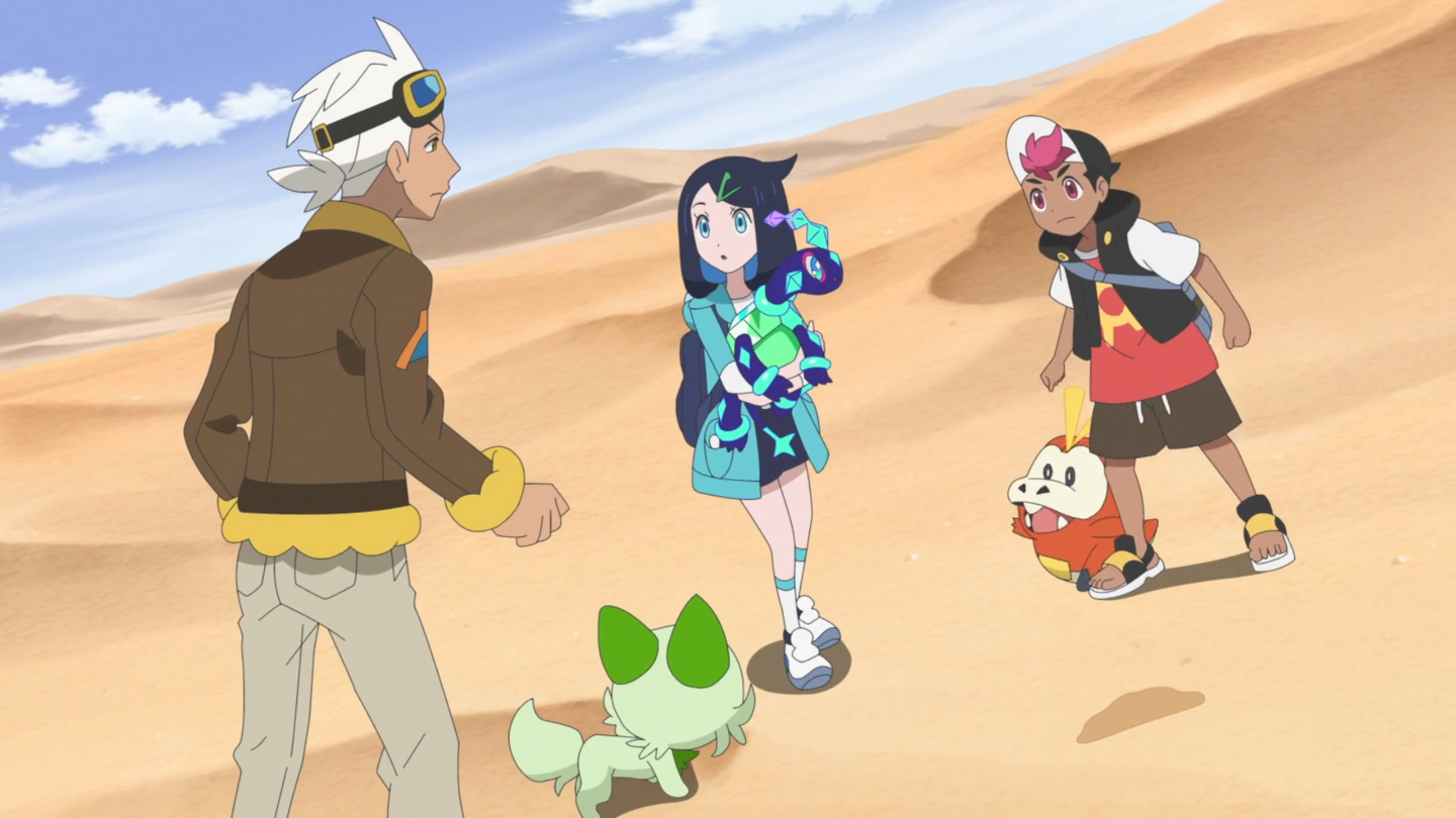 In einem Saloon in einer Wüste treffen sie ihren Auftraggeber. Dieser erkennt Friedel sofort und bittet ihn und die Kinder bei einem Getränk darum, nach einem Weherba zu suchen. Er hat es ursprünglich in Paldea gefangen und tags zuvor wurde es vom Wind weggeweht. Normalerweise kümmert sich der Mann darum, Pokémon vor Wilderern zu beschützen. Da sich zurzeit eine Bande in der Nähe befindet, sollen sich die Aeronauten darum kümmern.