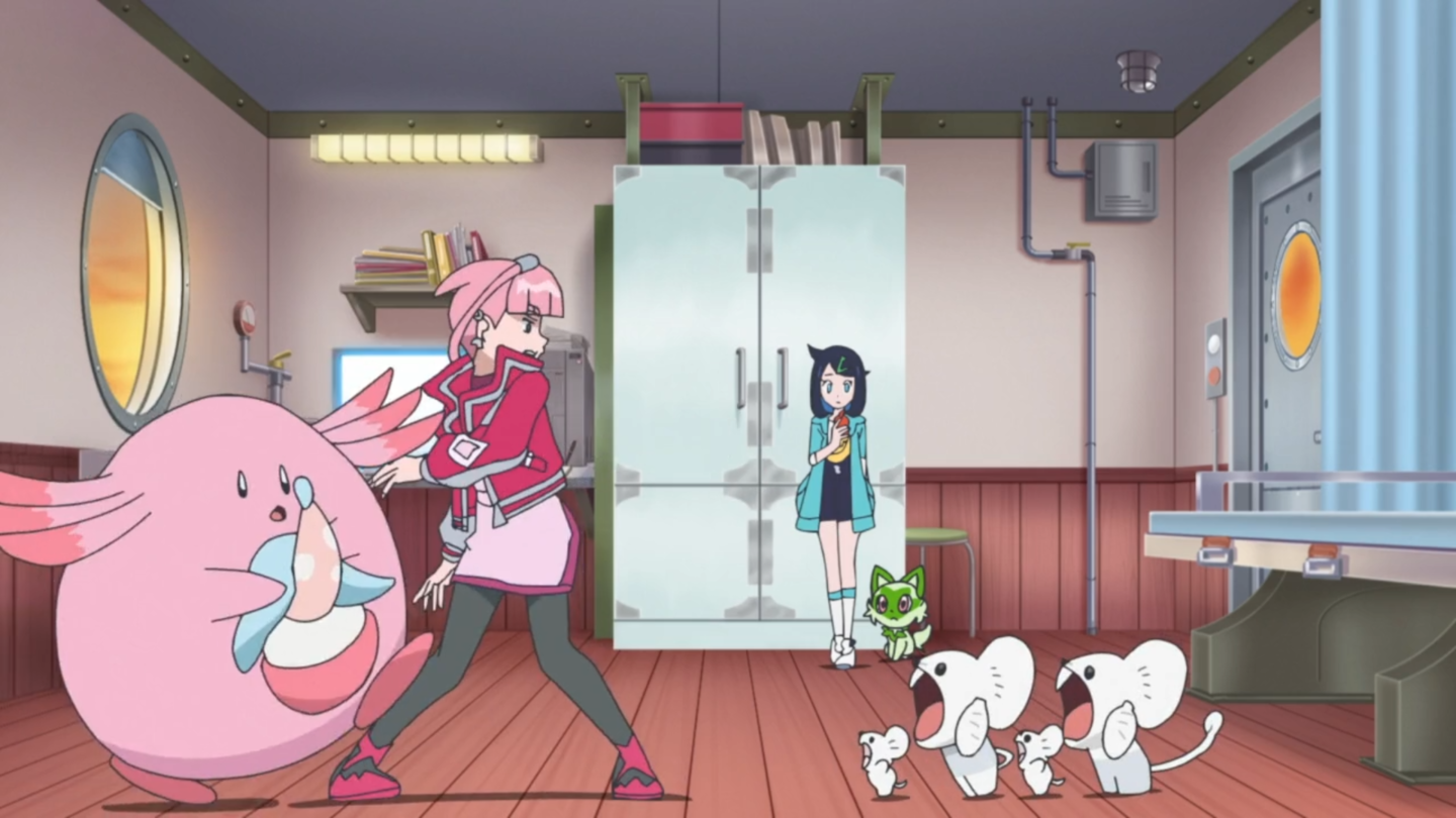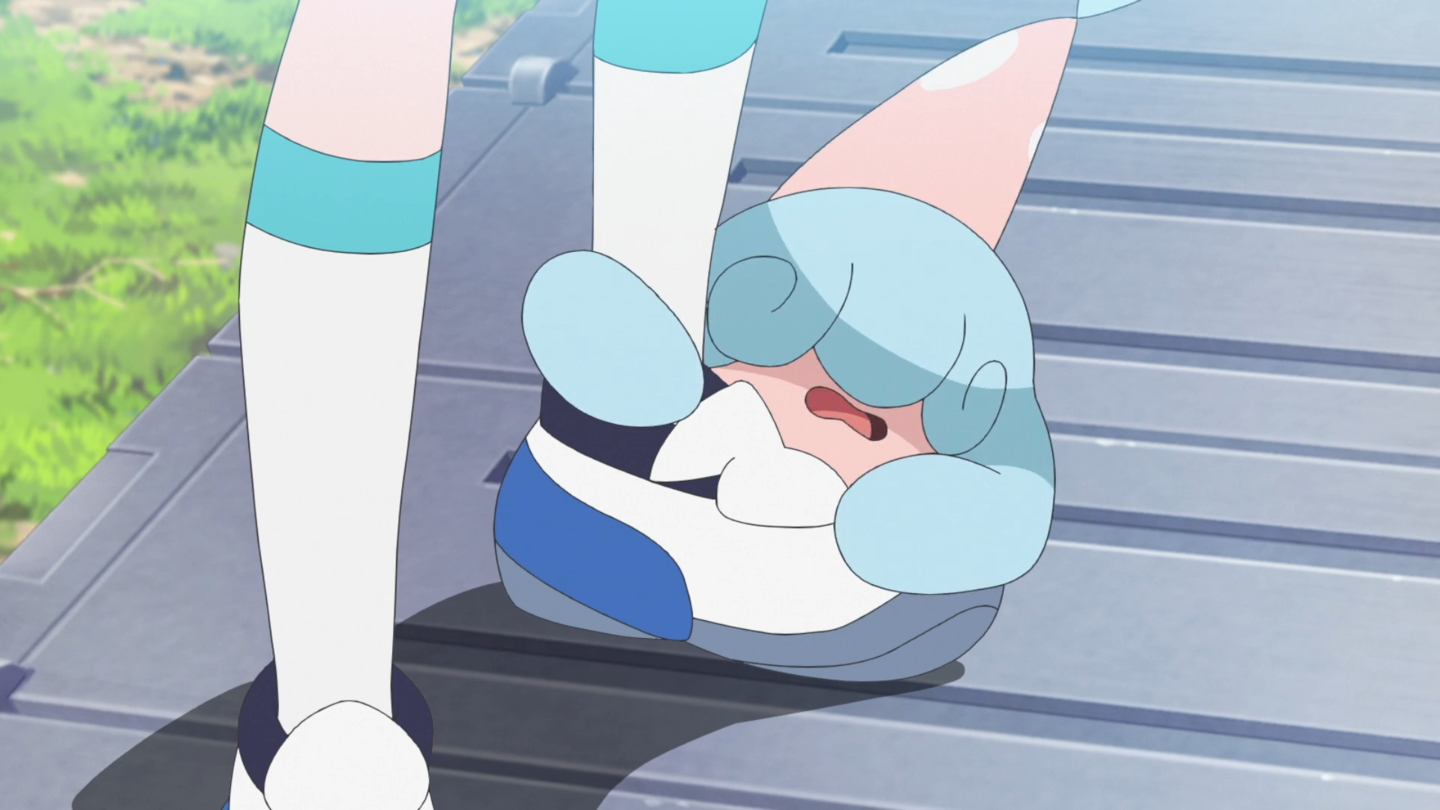 Die Tapfere Oliviana muss inmitten eines heftigen Sturms bei Nacht an einer Stelle im Wald landen. Am nächsten Tag bemerkt Rory, dass die Flagge der Aeronauten zerstört ist und holt von Orla ein Nähset. Mollie benachrichtigt Friedel, dass sie in der Zwischenzeit Untersuchungen der Pokémon auf dem Schiff durchführen möchte. Nach Schneppke taucht Liko bei Mollie auf, damit sie einen Blick auf Brimova haben kann. Die Ärztin äußert die Vermutung, dass es womöglich wegen des Sturms unruhig geworden ist. Chaneira bringt ein weiches Tuch vorbei, auf dem sich Brimova beruhigen kann.