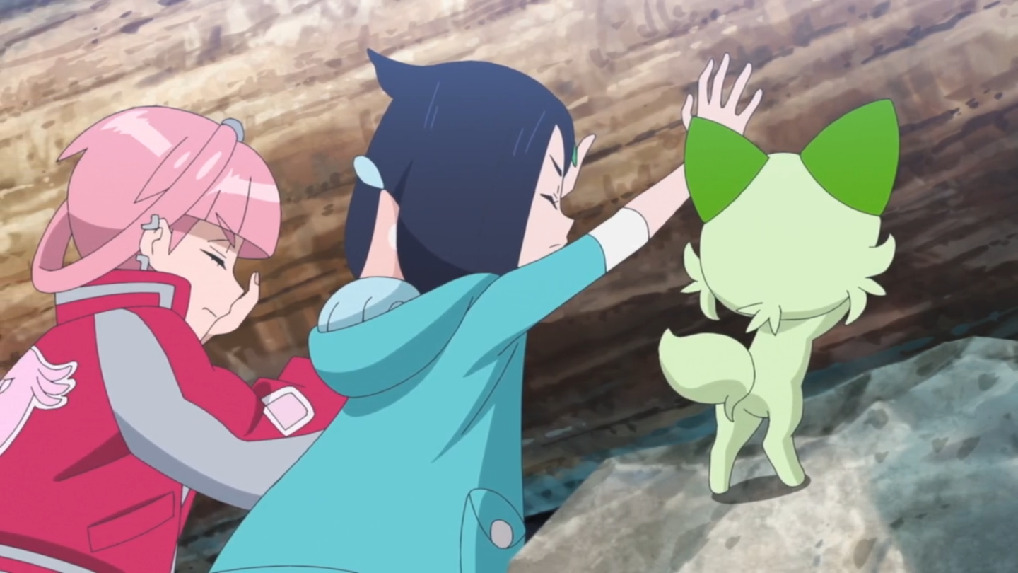 Außerhalb beginnt die Crew der Aeronauten, den großen Baumstamm vom Höhleneingang wegzuhieven. Währenddessen taucht Liko an der Front eines anderen Eingangs auf und bringt die geheilten Pokémon nach draußen. Die Pokémon haben gestärkt dabei geholfen, sich durch das Gestein zu arbeiten und einen Pfad nach draußen zu ebnen. Brimova wird nach einigen Dankesgrüßen allerdings ohnmächtig.