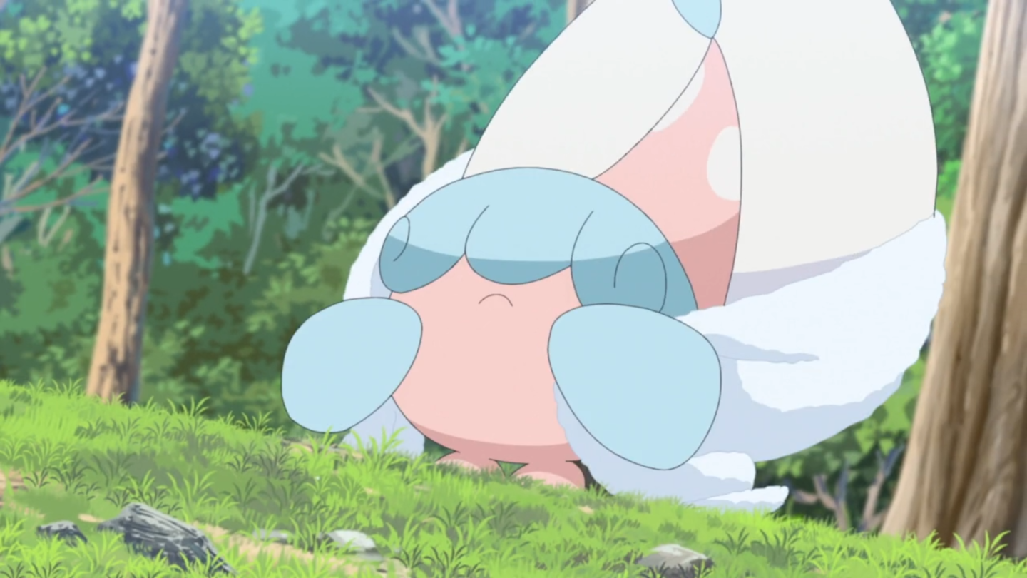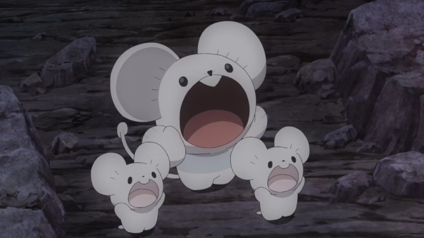 Brimova beobachtet sie argwöhnisch und beschließt dann, seiner Trainerin zu helfen. Dafür erhält es von Chaneira ein Ei, das es mit einem Tuch umgewickelt zu Liko trägt. Zwieps fällt währenddessen an einer Weggabelung erschöpft zusammen, bis Brimova auftaucht und den weiteren Weg vorgibt. Am Ende eines Ganges findet Liko weitere erschöpfte Pokémon, die zu Zwieps gehören. Kurz danach beginnt die Höhlendecke zu bröckeln und ihr Fluchtweg wird durch Felsen versperrt. Brimova reicht den Pokémon das Ei, damit sie es essen können. Allerdings können sie sich wegen fehlender Energie nicht dazu aufraffen. Liko schlägt daher vor, dass Brimova erneut Chaneiras Bewegungen nachahmt, um die Pokémon zu heilen. Das gelingt ihm schließlich, sodass es mittels Heilwoge die wilden Pokémon heilen kann. Die Freude darüber währt jedoch nur kurz, da der Weg noch immer versperrt ist.