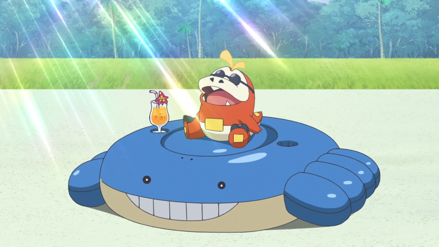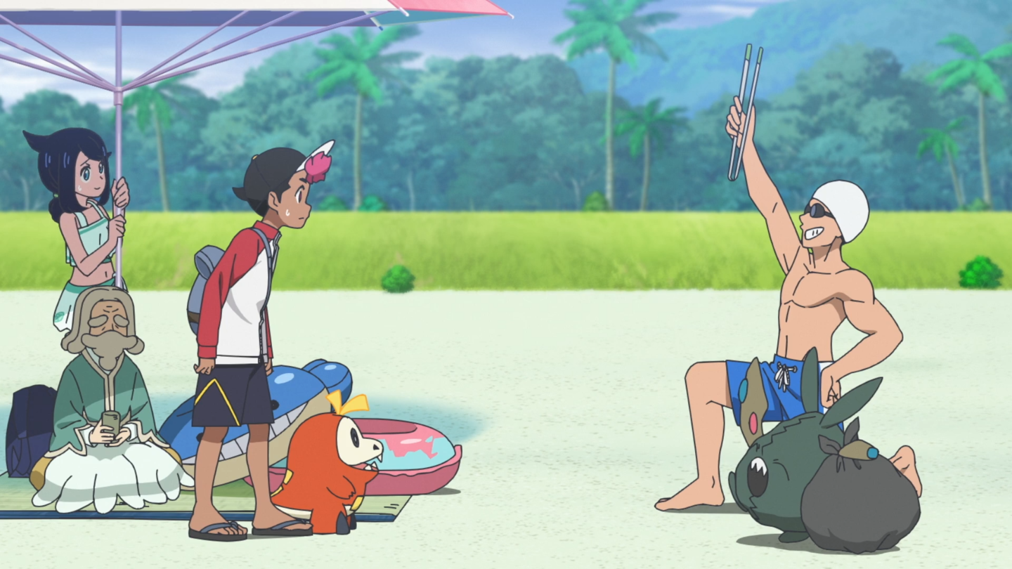 Die Crew der Volttackle-Aeronauten begibt sich für Lucius Tag an den Strand. Während Orla und Mollie die Tapfere Oliviana in Schuss halten, begeben sich Friedel und Murdock in die Stadt, um Zutaten für ein Barbecue zu kaufen. Liko und Rory bleiben mit Ludlow zurück und entdecken eine Menge neuer Wasser-Pokémon. Unter ihnen befinden sich Schligda, dem sich Felori intensiv widmet, wie auch einige Normifin im Wasser. Von einem selbsternannten Schwimmertyp erfahren sie, dass er tagtäglich mit Unratütox den Strand sauber hält. Ludlow freut sich unterdessen über das Wiedersehen mit den Normifin.