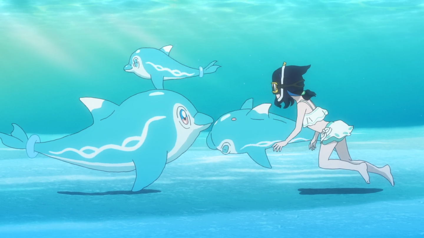 Der Schwimmer klärt Liko und Rory im Beisein des Normifin mit der besonderen Herzmusterung darüber auf, dass es sich bei ihm um Delfinator handelt. Allerdings hat noch nie jemand seine Verwandlung gesehen. Die Fotografen von zuvor kommen hinzu und berichten darüber, dass sie mit ihren Nagelotz schon lange Delfinator beobachten. Ihr Ziel ist es, zumindest einmal die Verwandlung zu sehen. Davon ist Delfinator jedoch nicht begeistert und spritzt den anwesenden Menschen Wasser ins Gesicht. Liko überkommt dabei der Gedanke, dass sich das Pokémon dabei wohl nicht filmen lassen möchte und dass sie die Verwandlung nicht sehen muss. Durch Ultraschallwellen erfährt Delfinator von ihren Emotionen und ist darüber fasziniert.