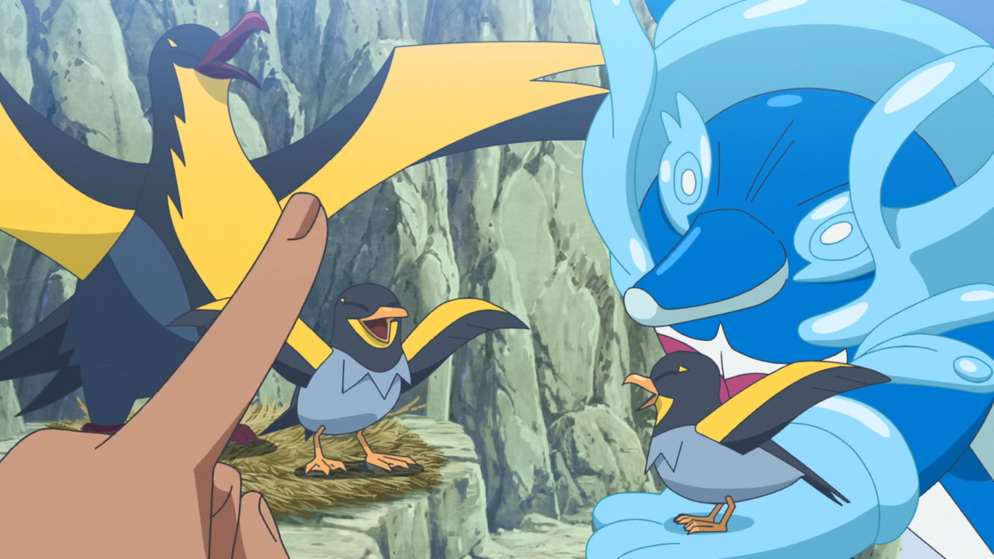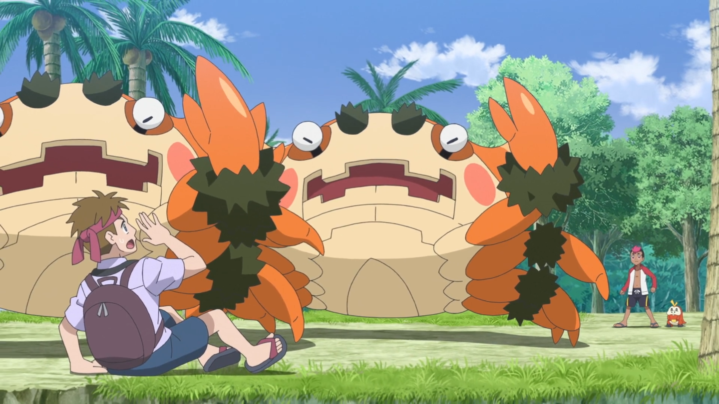 Liko und Rory werden ebenfalls auf den panischen Fotografen aufmerksam, wobei der Junge zu ihm auf die Klippe geht. Krokel versucht, die Klibbe mit Säuselstimme aufzuhalten, allerdings schlagen sie mit Kreuzschere zurück. Liko wiederum überlegt, wie die Fotografen von Delfinator abgelenkt werden können. Felori erklärt sich bereit, eine Attacke einzusetzen und so gibt sie ihm den Befehl, Zauberblatt einzusetzen. Die Sicht der Männer und Pokémon ist verdeckt und Delfinator erhält im Beisein von Liko die Möglichkeit, sich zu verwandeln. In seiner Heldenform stellt es sich nun den Klibbe entgegen. Nach einem Austausch von Düsenhieb und Kreuzschere steckt Delfinator in der Klemme.