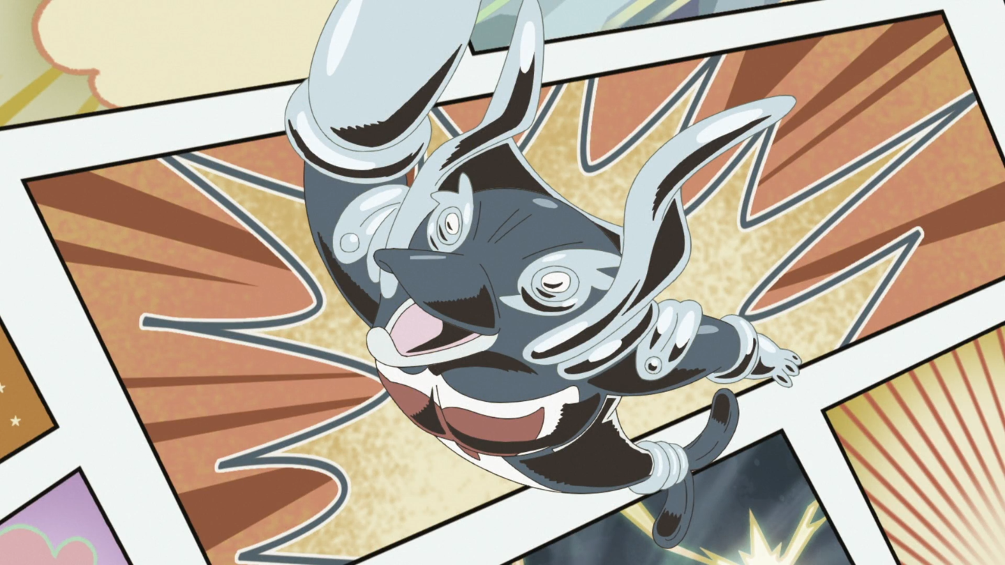 Liko begibt sich auf Lucius Tauchgang und entdeckt dort ein Normifin mit einem anderen Muster auf dem Bauch. Nachdem sie aufgetaucht ist, ist gerade ein Mann am Strand dabei, von einem Hausdach zu fallen. Vom Meer kommend taucht jedoch rechtzeitig der sogenannte Meeresheld Delfinator auf, um den Mann zu retten. Im Laufe seines Auftritts wird es von einigen weiteren Männern fotografiert und verschwindet anschließend wieder im Wasser.