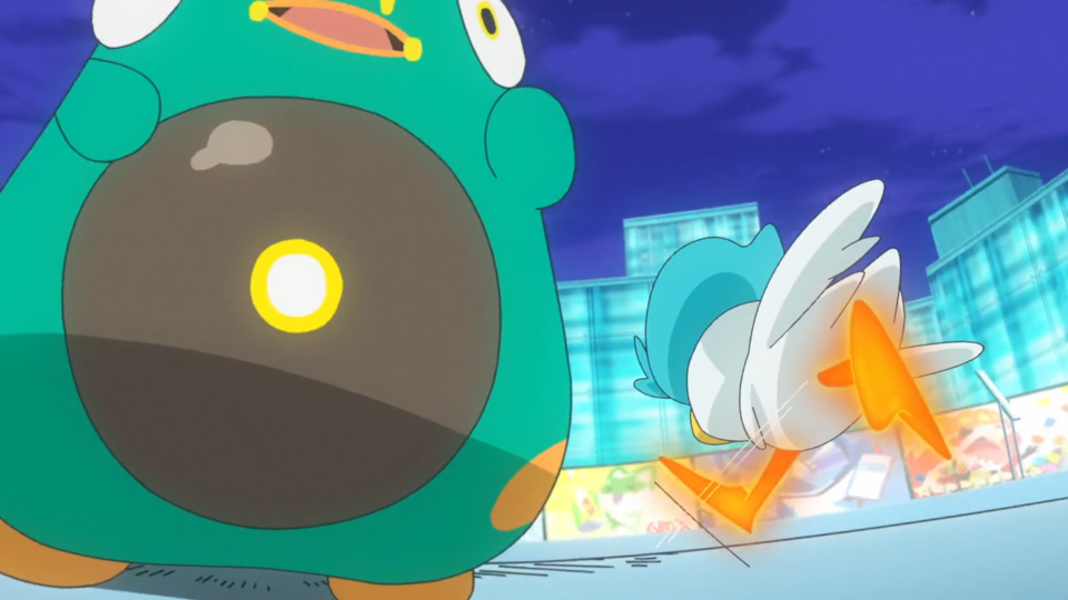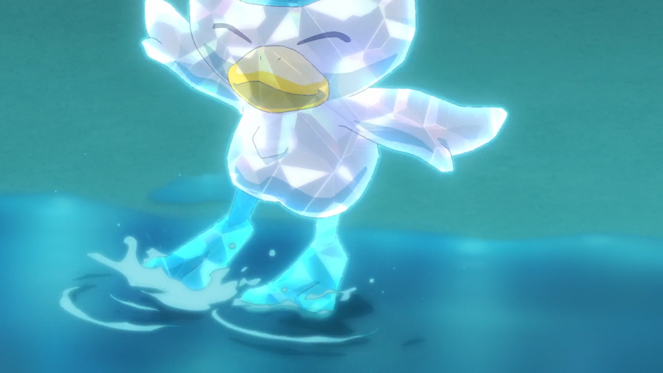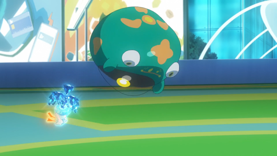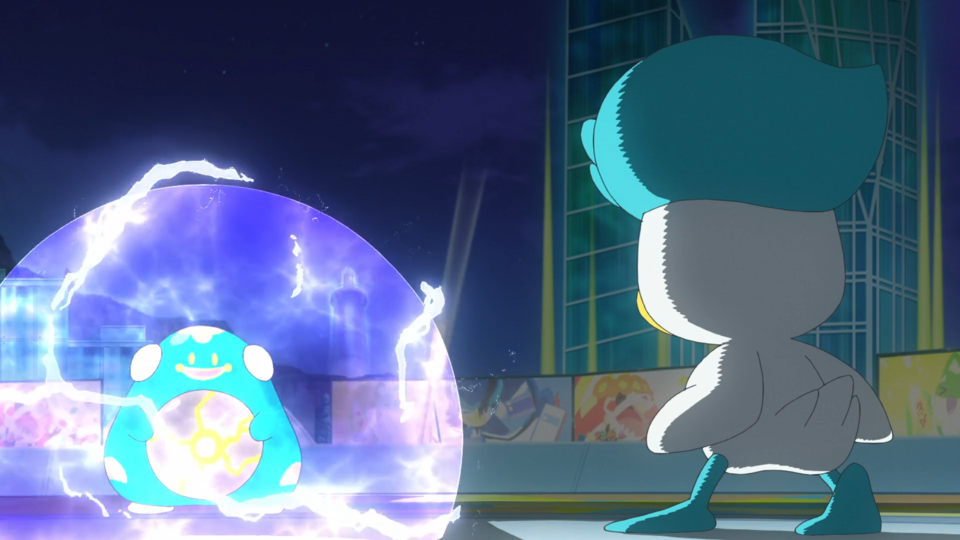Wampitz nutzt zuerst Funkensprung, dem Kwaks mit hoher Geschwindigkeit ausweichen kann. Auch dem nächsten Angriff kann es ausweichen und mit einer Aquaknarre kontern. Hierbei trifft Kwaks Wampitz’ Rücken, das sich davon aber nicht beeindrucken lässt. Stattdessen aktiviert sich dadurch sein Dynamo, wodurch Elektro-Attacken stärker werden. Anstelle des erwarteten Funkensprungs kommt jedoch ein Ladungsstoß, dem Kwaks aufgrund der ausbreitenden Energie nicht ausweichen kann. Danach folgt eine Kombination aus Fußkick und Aquaknarre, die Wampitz zu Boden befördert. Anstatt zurückzuschlagen, nutzt es aber Tagedieb, um seine Kraft wiederherzustellen. Die anschließenden Aquaknarren steckt es mit Leichtigkeit weg und schließlich folgt wieder ein Ladungsstoß. Dieser sorgt dafür, dass die Lichter ausgehen und der Stream vorübergehend nicht erreichbar ist. Dot ist über die Situation planlos, erkennt aber aufgrund von Kwaks’ Tanz in den entstandenen Wasserpfützen, dass sie die Sache mit der Terakristallisierung herumdrehen kann. Enigmara ist über den Zeitpunkt sehr verwirrt, ebenso wie über die Tatsache, dass Kwaks keine Wasser-Attacken trotz des entsprechenden Hutes nutzt. Während Wampitz mit weiteren Fußkicks zu Fall gebracht wird, lernt Kwaks durch die Sprünge im Wasser die Attacke Aquadurchstoß. Das Publikum ist begeistert und der Stream geht wieder online. Auch Enigmara nutzt nun die Terakristallisierung für ihr Pokémon. Es folgt ein Aufeinandertreffen von Ladungsstoß und Aquadurchstoß, dem Kwaks am Ende jedoch nachgeben muss. Somit verliert Dot diesen Kampf.