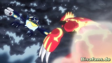 Es kommt zu einem erbitterten Kampf, den die Legendären Pokémon deutlich dominieren. Dennoch können die beiden Mega-Pokémon Treffer landen und Angriffen der Legendären Pokémon entgehen.